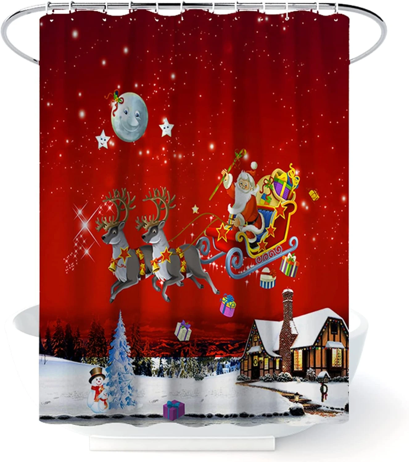 - Christmas Shower Curtain: This 72x72in shower curtain made of 100% high waterproof polyester. Odorless, Non-toxic, Environmentally friendly. Includes 12 free durable plastic shower curtains hooks.