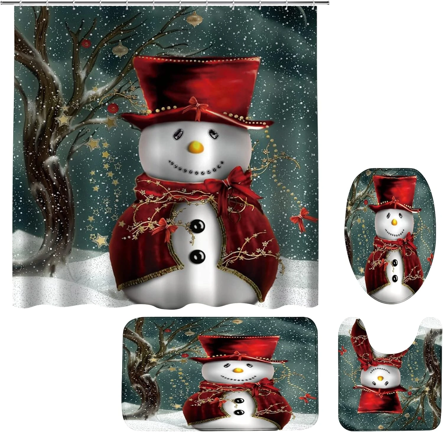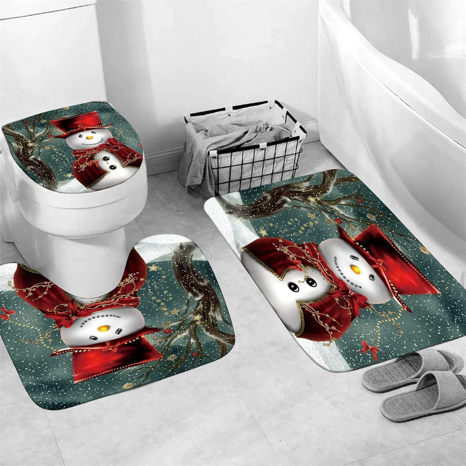 - 【Premium Material】Christmas Shower curtains for bathroom sets is made of 100% Polyester fabric, the bathroom mat and u type rug are made of flannel, which is comfy, non-toxic and colorfast, skin soft, waterproof and durable