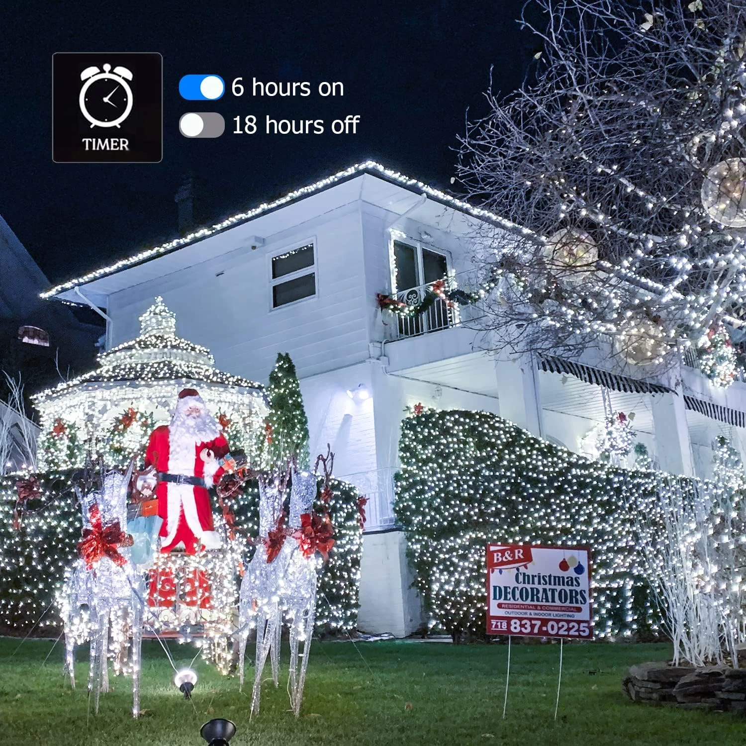 - 🎁8 Lighting Modes & Timer Functions- Combination, In waves, Sequential, Slo-Glo, Chasing/Flash, Slow fade, Twinkle/Flash, and Steady on. Each mode is so different and satisfied with your different moods and occasions. Our white Christmas lights indoor also timing function, which automatically turns on for 6 hours and turns off for 18 hours.