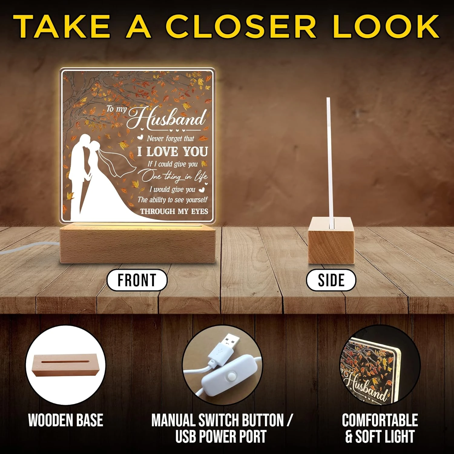 - Gifts For Valentine’s Day – a night light that will make your beloved smile and bring a tear of happiness to him with a meaningful quote, thanking your husband for all the special moments you’ve shared. Your one holds a special place in your heart, and this gift will show how much you love him.
