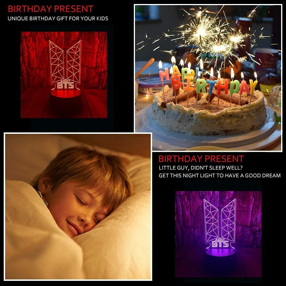 Be the first to review “Kpop BTS Bangtan Boys 3D LED Optical Illusion Bedroom Decoration Table Lamp With Remote 7 Colors Change Dimmable Acrylic Visual Night Light Birthday Christmas Gift For Child,kids,Teens,Toddlers” Cancel reply