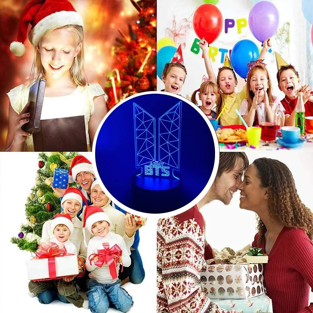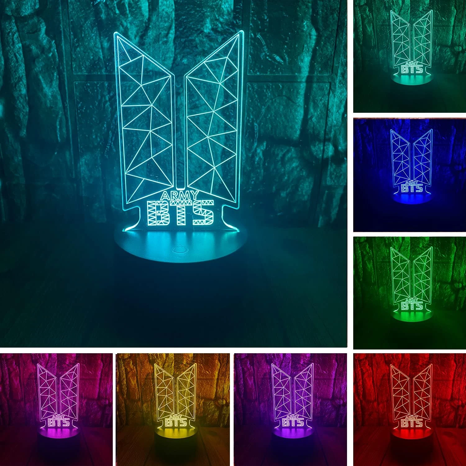 Kpop BTS Bangtan Boys 3D LED Optical Illusion Bedroom Decoration Table Lamp With Remote 7 Colors Change Dimmable Acrylic Visual Night Light Birthday Christmas Gift For Child,kids,Teens,Toddlers