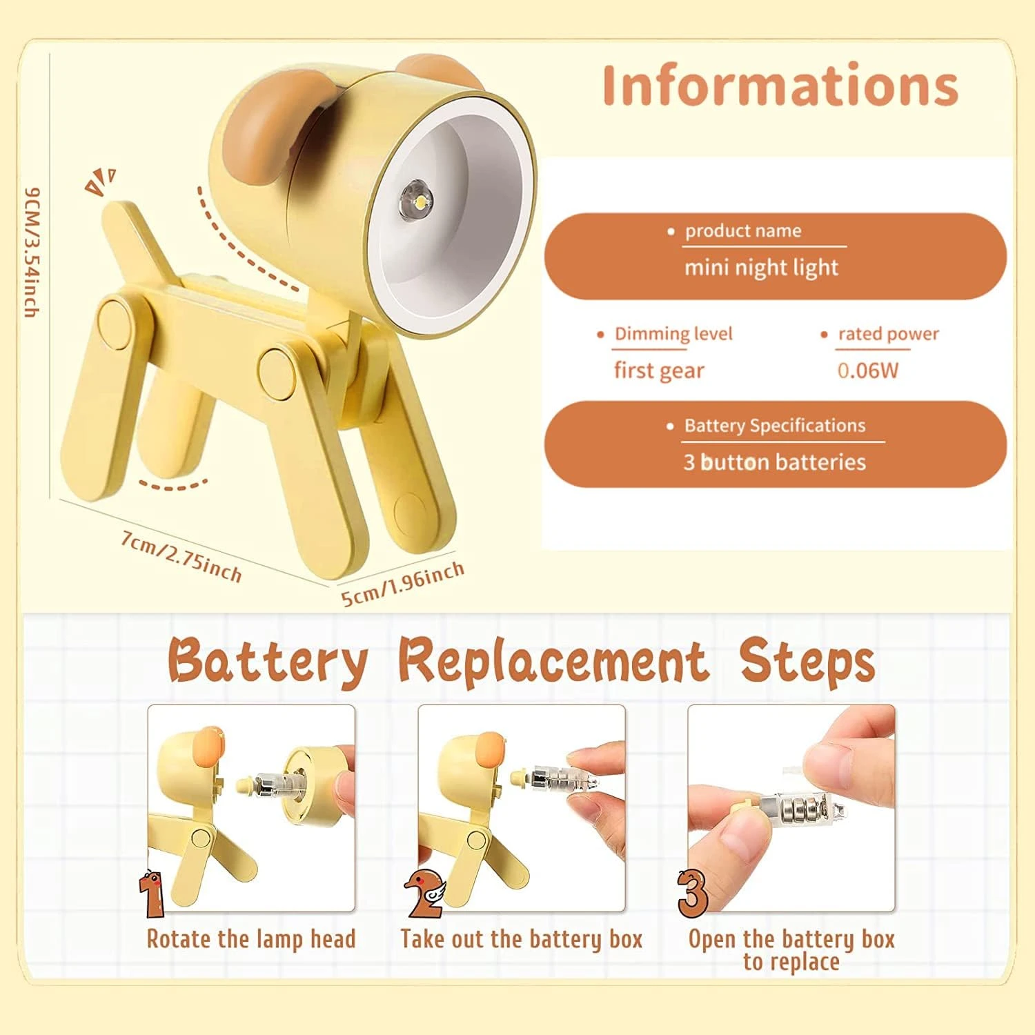 - 【WHAT YOU WILL GET】12PC puppy-shaped handy size night light, 108 button batteries, easy to replace, last for a long time