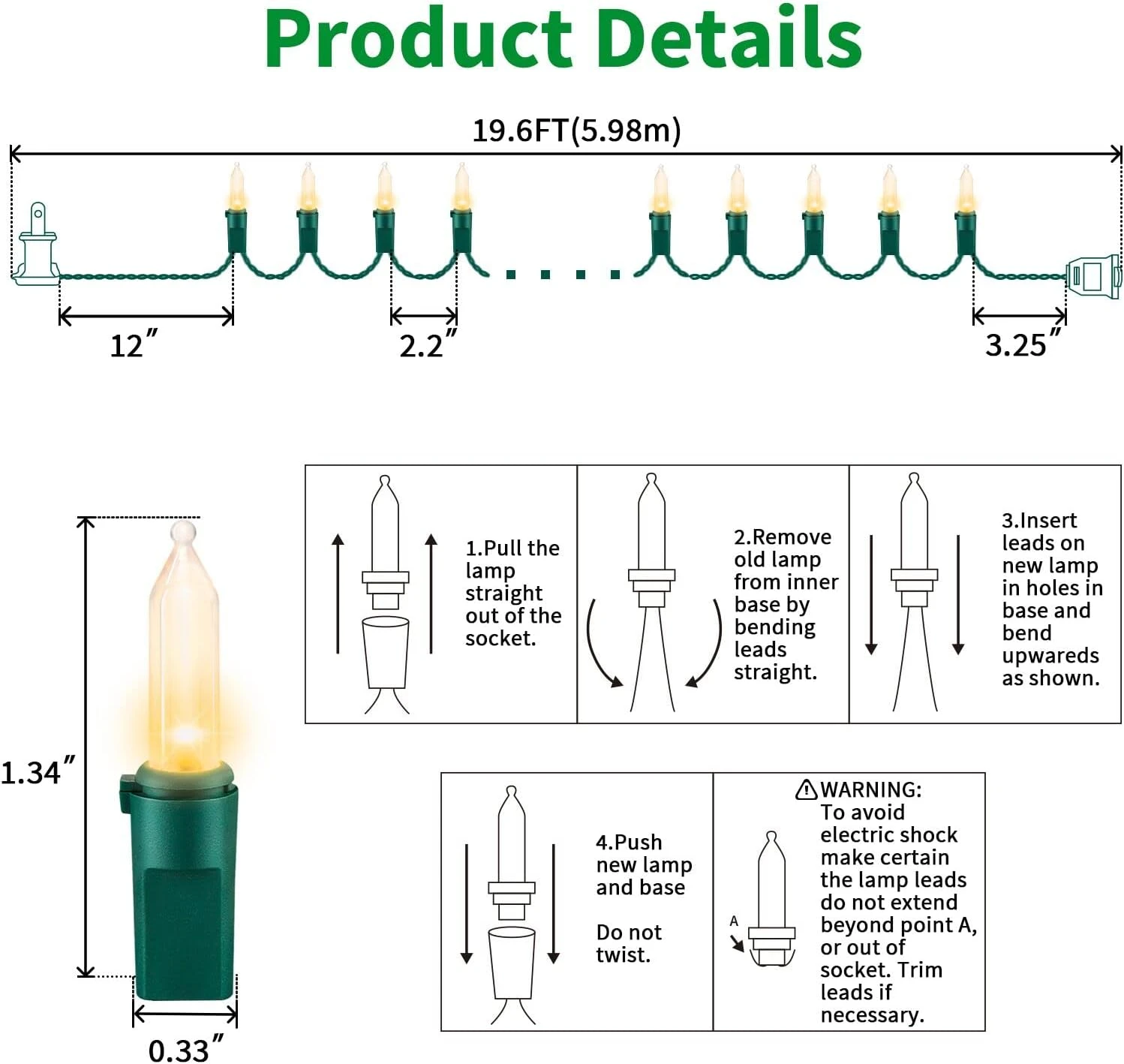 - 100 incandescent Christmas Lights: Old-fashion incandescent Christmas warm white lights, creates a warm festive atmosphere, surely lights up your room and house. A warm welcome sign at night to make your home a wonderful sight for your neighbors!