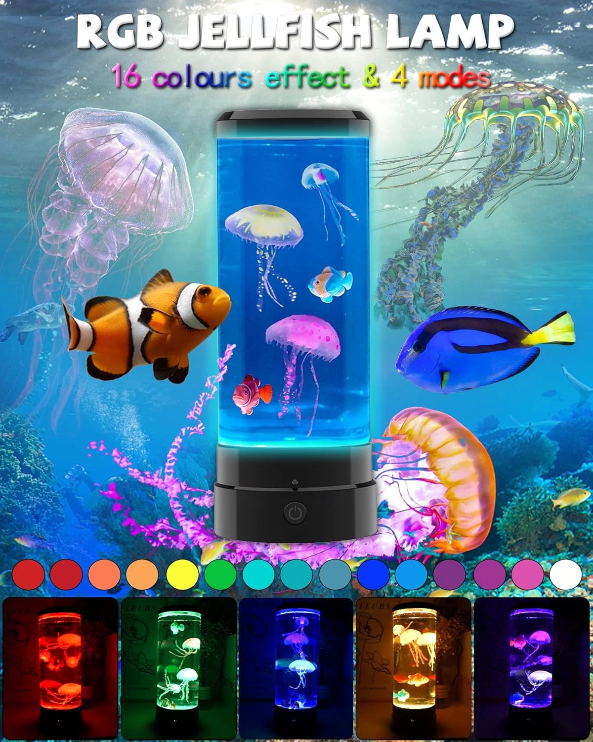 - ✨【2 In 1 Special Design】Our jellyfish lava lamp not just a latest aquarium ornament, but also a bedroom night light, The simulated jellyfish and fish is lifelike swimming accompanied by the 16 color-changing light effects, which gives children unlimited curiosity and imagination to the sea world.