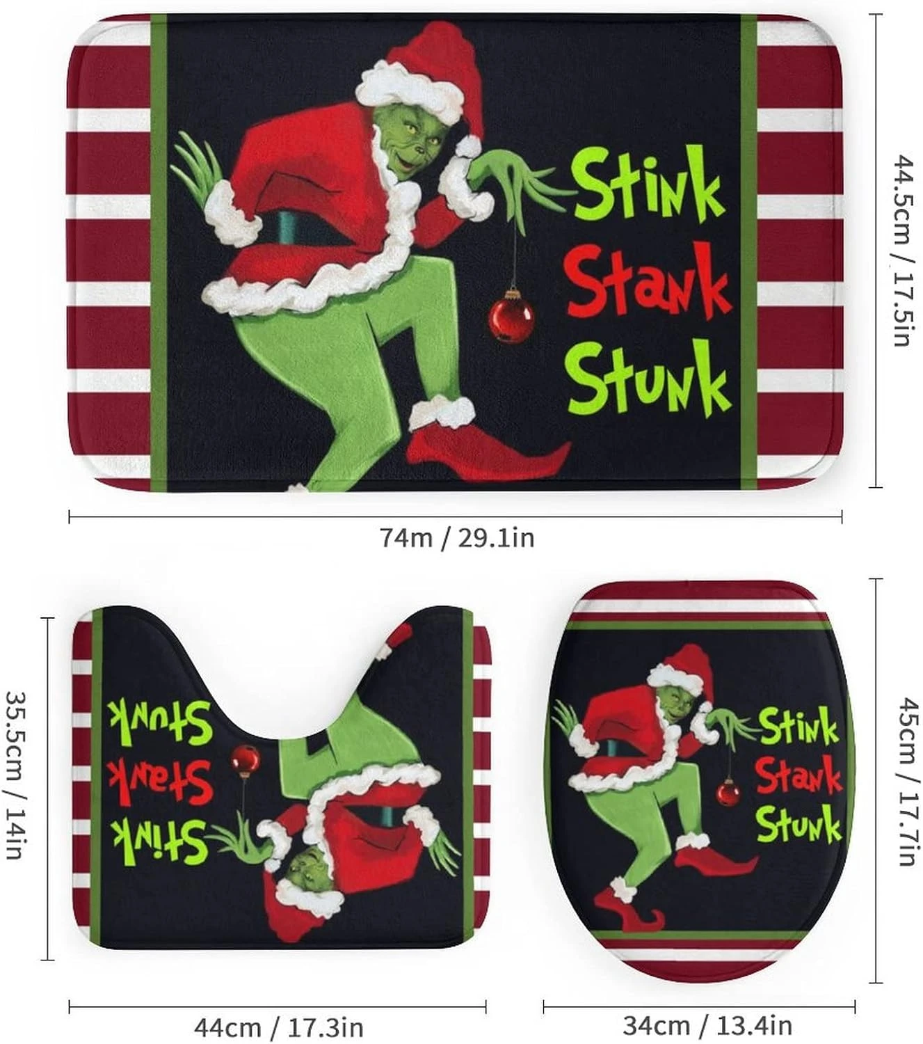 - SIZE: 1 Shower Curtain(70.8 x 70.8 inch ) with 12 PCS Plastic Hooks,1 Bathroom Mat(29.5 x17.7 inch),1 U Shape Rug(17.7 x14.7 inch) and 1 Toilet Lid Cover(17.7 x 13.7 inch).The bathroom accessories set size is suitable for most bathrooms.