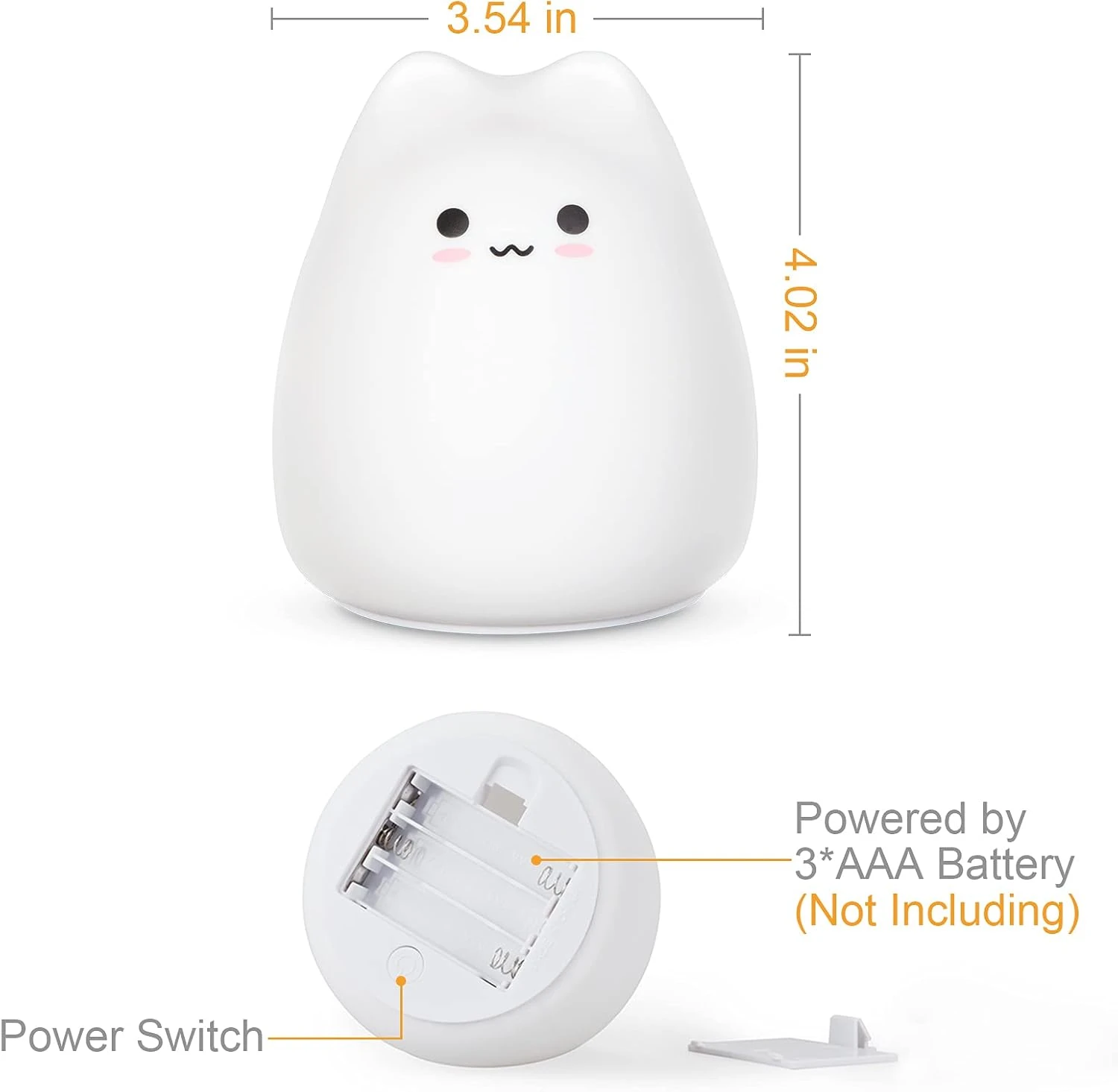 | Special Feature | ‎2 Lighting Modes, Tap Control, Cat Night Light, ABS+Silicone, Battery Powered, Squishy Silicone |