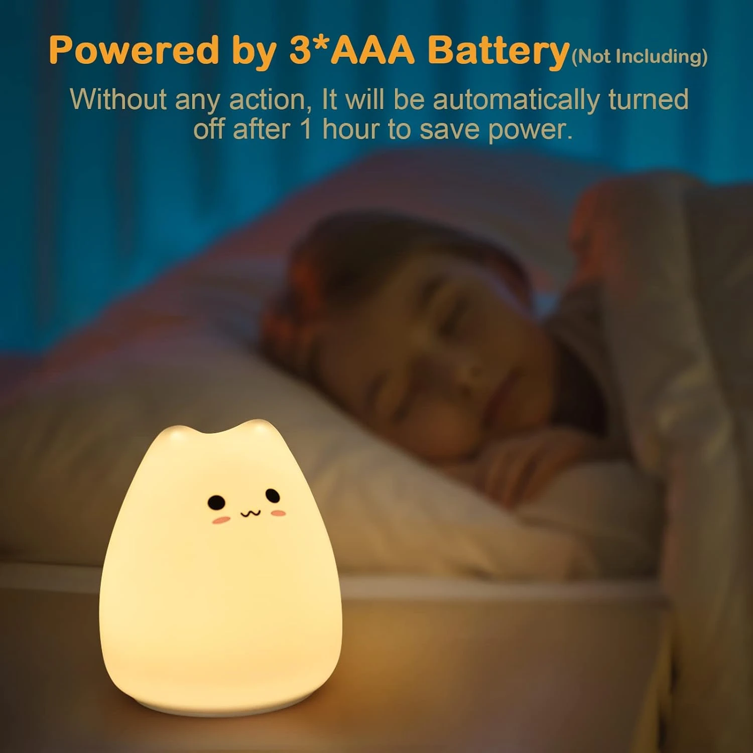 - Portable Battery Powered: This kids night light is powered by 3*AAA batteries (not included). And it will automatically turn off after 1 hour if there is no action, but it will start to work when you pat it again.