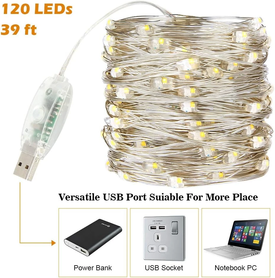- 【Come With Remote Control and Timer】-This updated version fairy lights usb powered remote control come with timing function, brightness adjustable, 16 solid colors changing, dimmable,4 modes optional(Flash,Strobe,Fade,Smooth).It is 39ft/12M and has 120 led bulbs(other string lights are 100)provide more stable brightness.the fun battery fairy string lights comes with a 28 keys IR remote wit turn on/off button