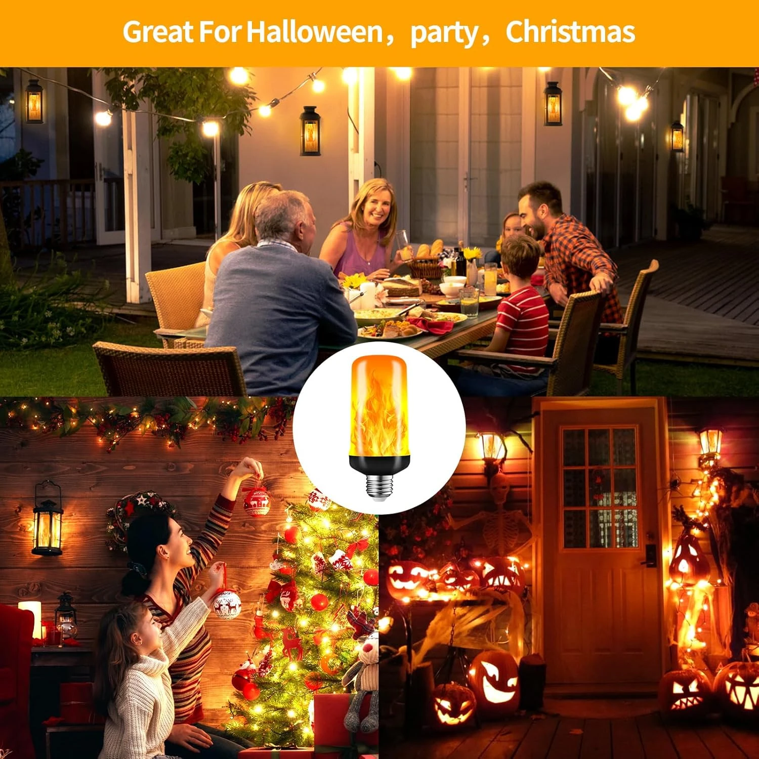 - Wide Application – This Flickering Light Bulbs are great ideal for Halloween, Christmas, Valentines, Thanksgiving, Party, Easter and other holidays. The fire light bulbs can create relaxed and romantic atmosphere, can be used to anywhere in the home to add a sense of atmosphere and classic charm, like living rooms, dining rooms, front yard, porch, entryway, Porch, Patio, gardens, and restaurants, churches night clubs, hotels and bars.