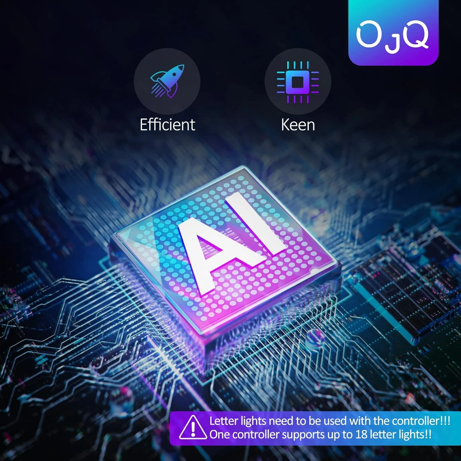- AI chip: intelligent AI voice control chip, our brand new letter light controller has added a voice control pickup chip, which can control the light and shade of the letter light according to the changes of the surrounding music, and can also pick up the sound through the mobile phone microphone