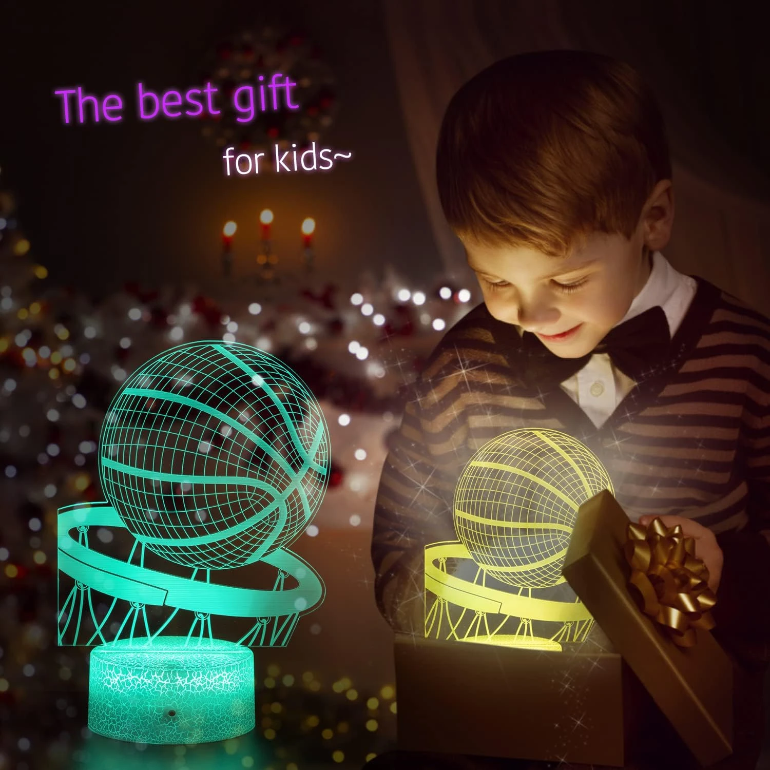 - 【Creative 3D visual effects】This is an 3D illusion lamp can show up the basketball when it light up, with an optical acrylic flat board with laser engraving can give you amazing 3D visual effect. Novelty 3D illusion night light has a nice hologram effect, make your surroundings more lively.