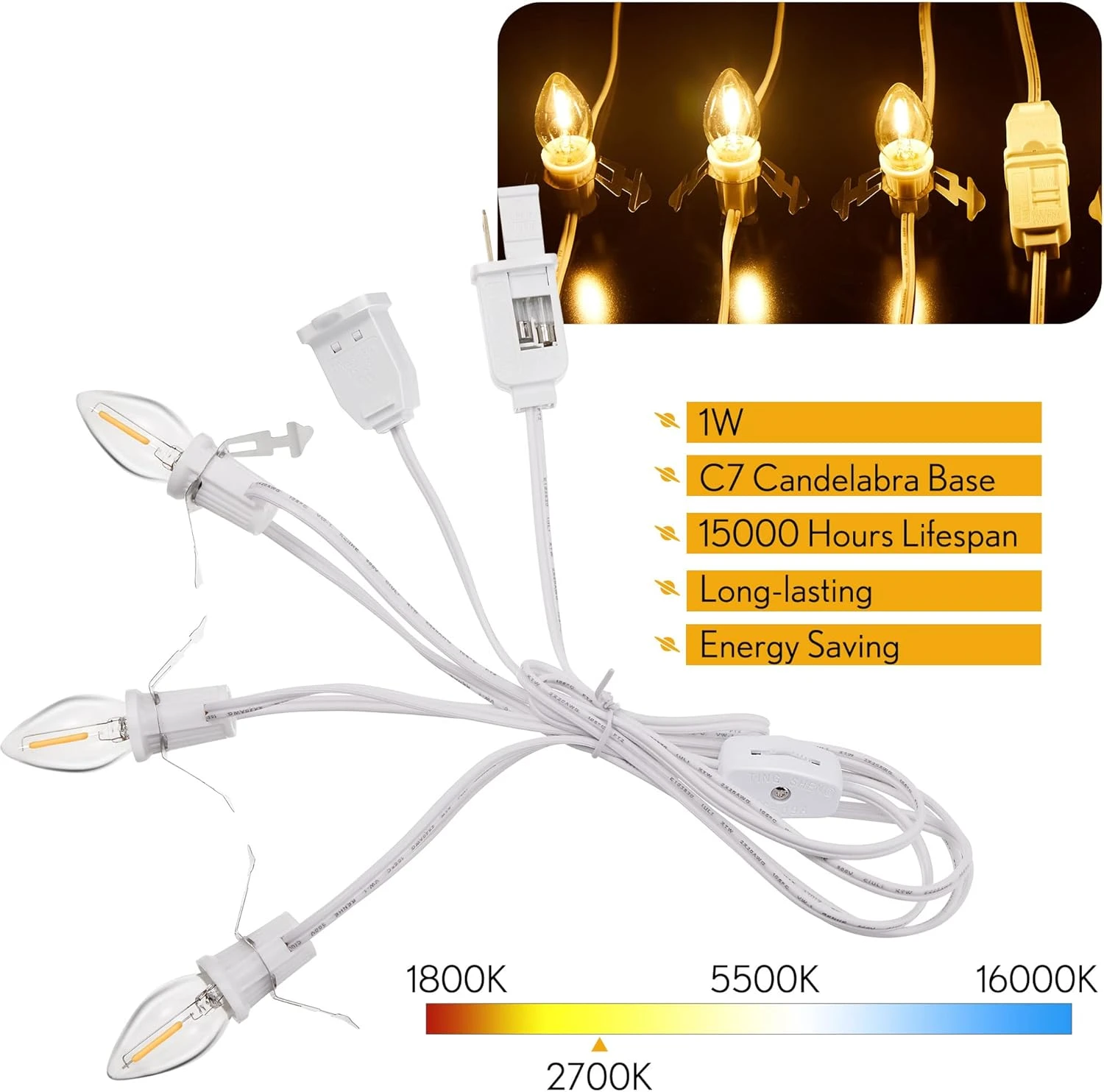 - Christmas lights white cord: the blow light bulbs are easy to install, simply use the attached clip and secure each bulb in a hole in ceramic and more, low consumption and cool to touch, safe to use