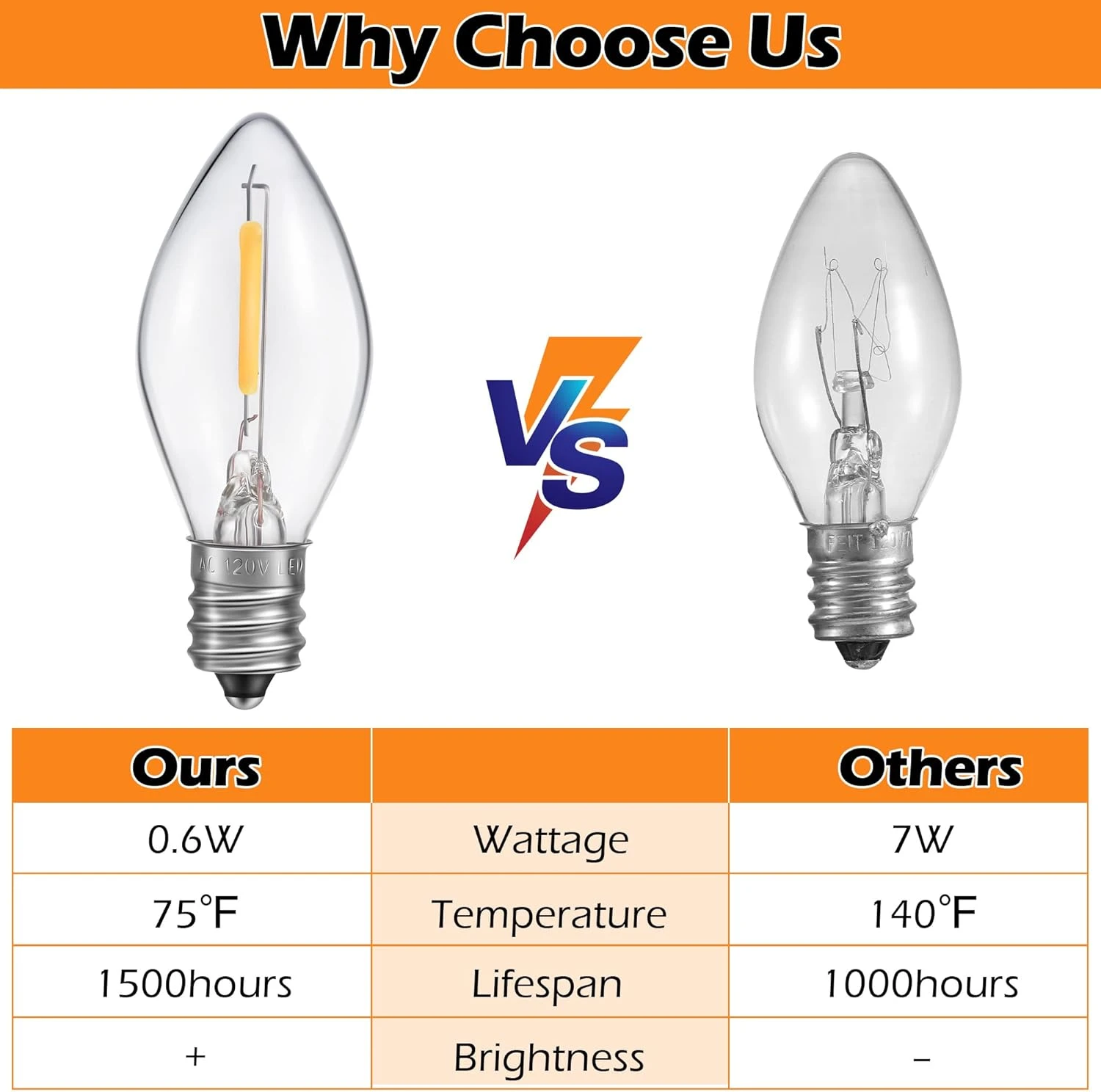 - Energy Saving C7 String Lamps: C7 LED blow mold lamps replacement cord lights have less energy consumption, lower watt, safe and energy saving, can be touched by hand, will not cause burns, safe for children to use
