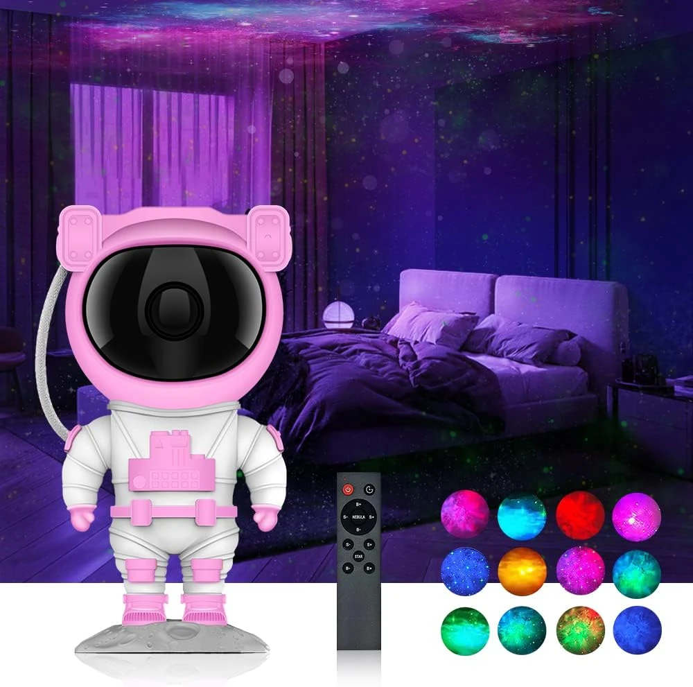 - 🎁【Great Gift for Kids Adults】The astronaut light projector is a perfect gift for Kids and families.Abandon the traditional white and use Pink-White to give children a space for reverie . Helps stimulate children’s curiosity, imagination and creativity. Suitable for Christmas, Halloween, birthdays, parties, weddings, room decoration, children’s day, anniversary gifts, etc.