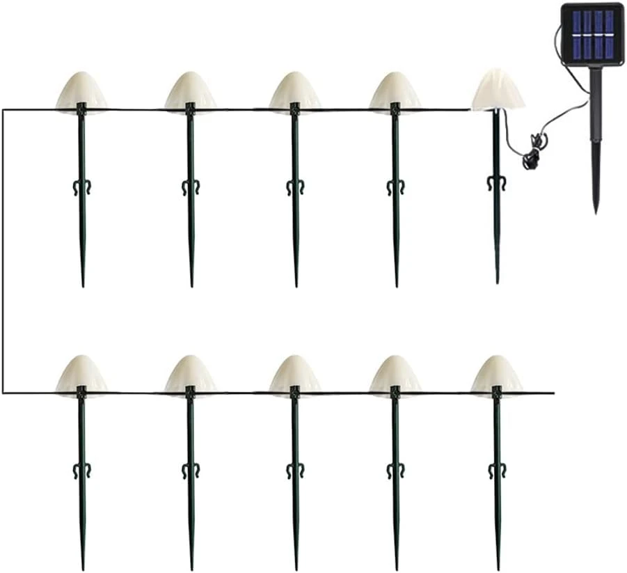 - 10Pcs Solar Mushroom Lights: The Mushroom Lights length in 11.5 ft and equipped with 120LED, the wire is made of quality copper, thin and flexible, will beautifully dress up your garden, path or porch, creating a warm and sweet atmosphere.