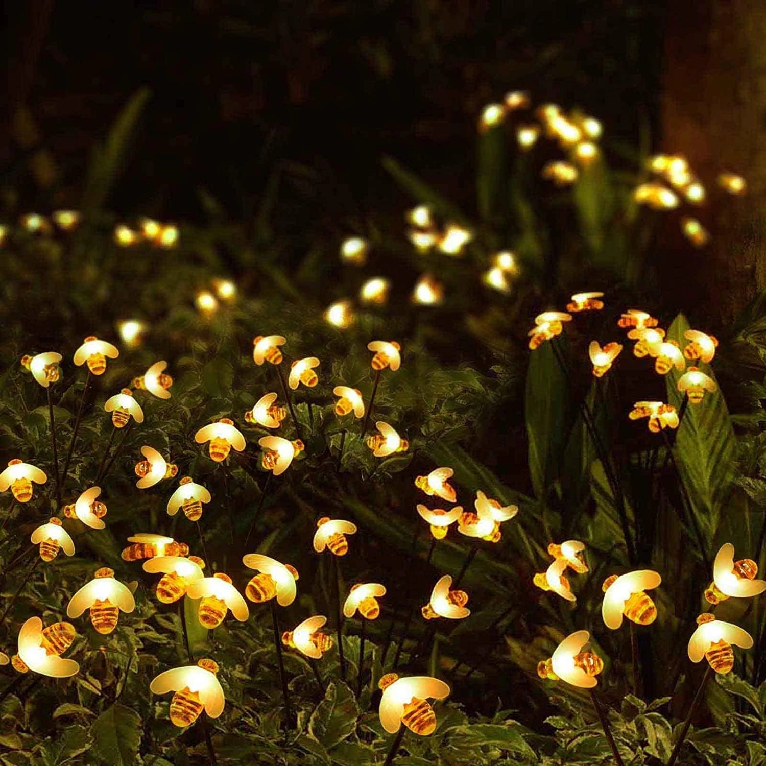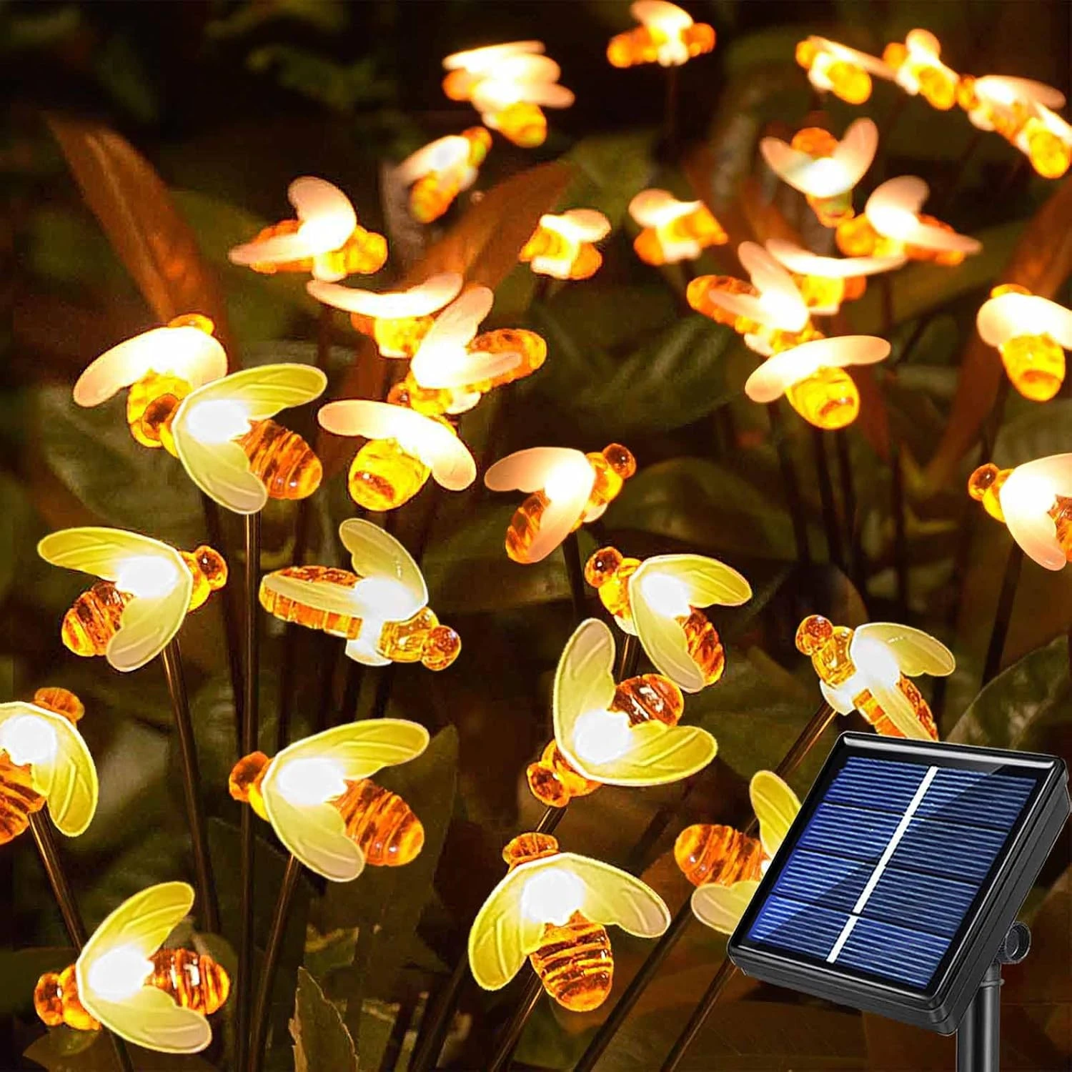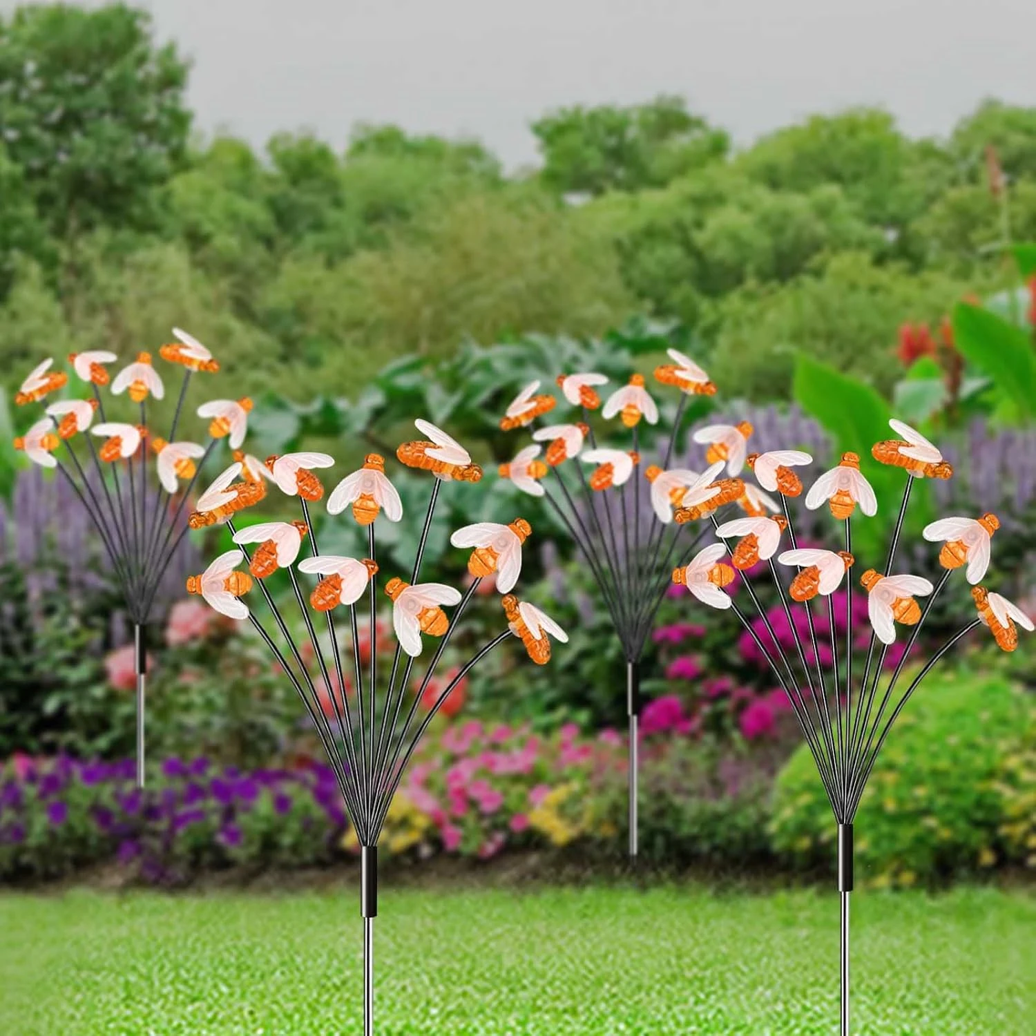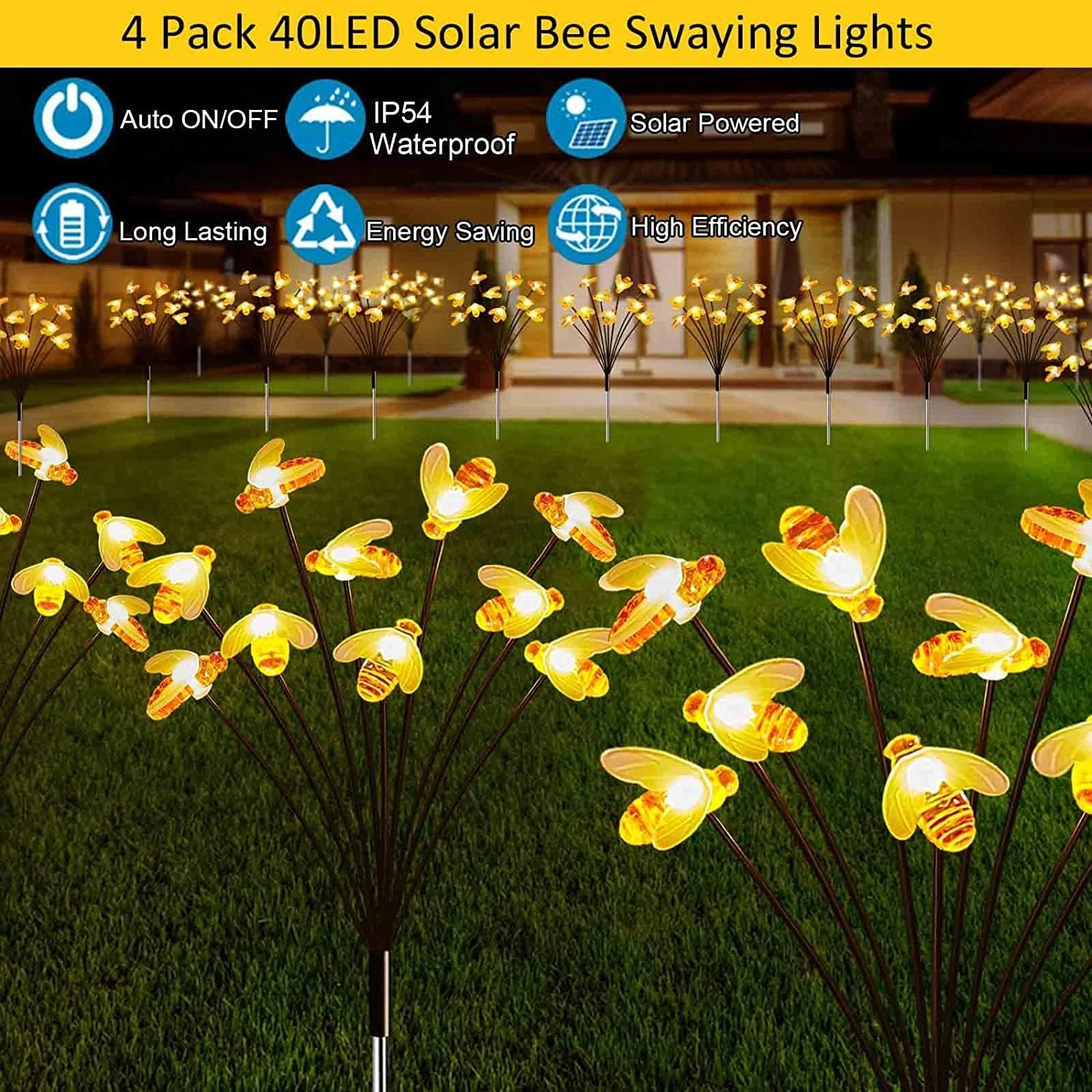 - 【Upgraded 4 Pack Solar Bee Swaying Lights 】- solar outdoor garden lights with unique firefly design can sway and dance when the wind blows, as if the real “bee firefly” flying for garden decor. Solar powered firefly lights with warm white 40Led bulbs. A very cute addition to your garden.