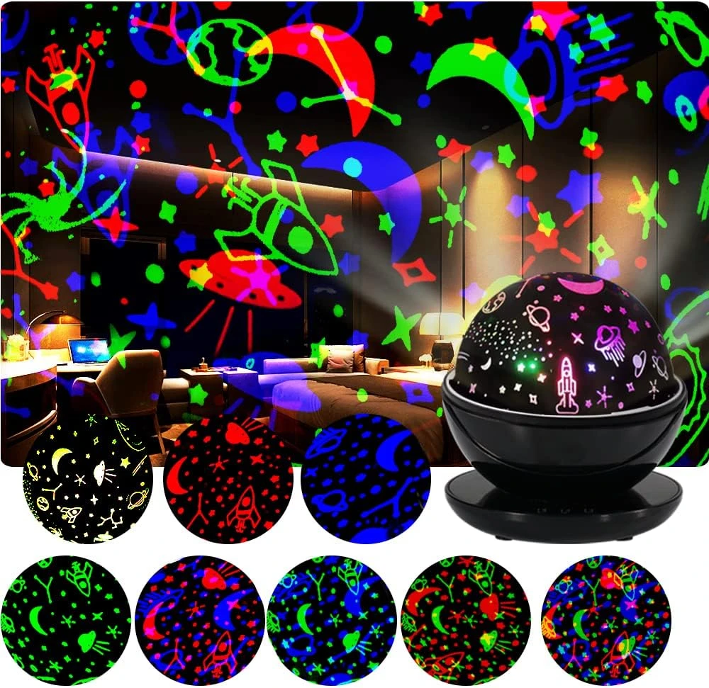 - ❤ Color changing lights. The LED night lights show Colors Lights(Sunlight, Red,Blue,Green, 2 colors combination and all colors combination flashing).Take your children into the dream space of the universe that full of stars and Dinosaurs, Help your kids get rid of scared at dark night, they good for kids sleep well.