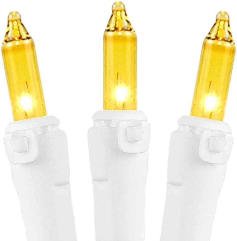 - 100 Light Yellow Christmas Mini Light Set – White Wire – 50 Feet Long – UL Listed for Indoor/Outdoor Use
