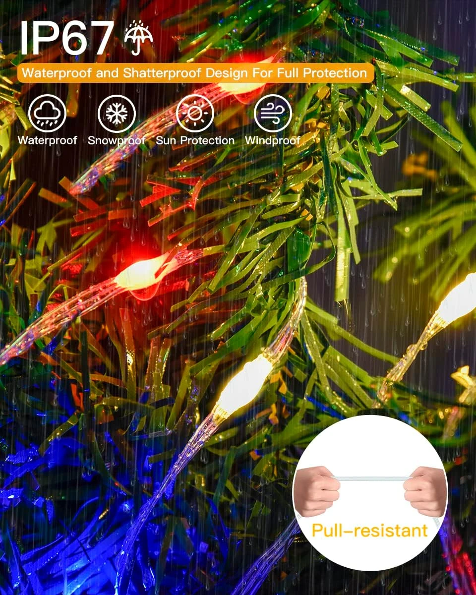 - 🎅【Super IP67 Waterproof String Lights】Specifically designed for outdoor use. The Christmas tree lights have the highest level of waterproof rated with IP67. Our led string lights will still stay super bright and sparkling even in strong rain, and windy days.