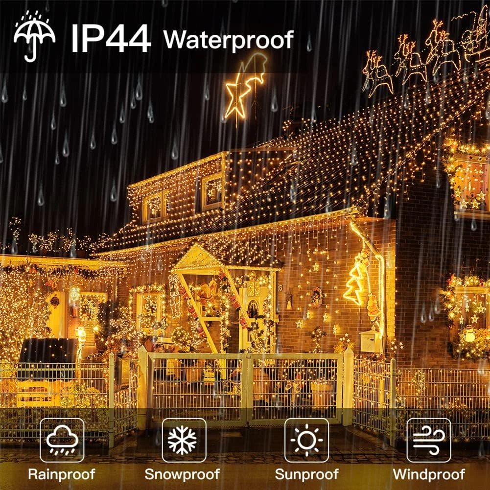 - 🎄【IP44 Waterproof & UL Certified】These icicle Christmas lights are IP44 waterproof. Using 29V low voltage certified by UL, more safety and less power consumption. It is the best choice for your outside Christmas lights. The adjusted controller is also waterproof, then you can safely use these dripping icicle lights outdoor.
