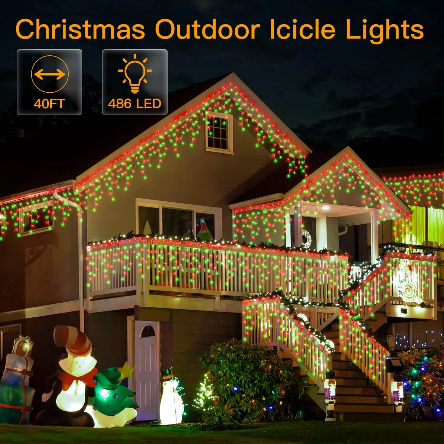 - 🎅【Connectable Icicle lights outdoor】40ft light strand with 81drops+16.4ft power lead, 486 LED Hicicle Christmas lights are made from PVC protection wire which is durable and resistant to pull. Dripping icicle lights outdoors can connect up to 3 sets together enough to illuminate your wider yard.