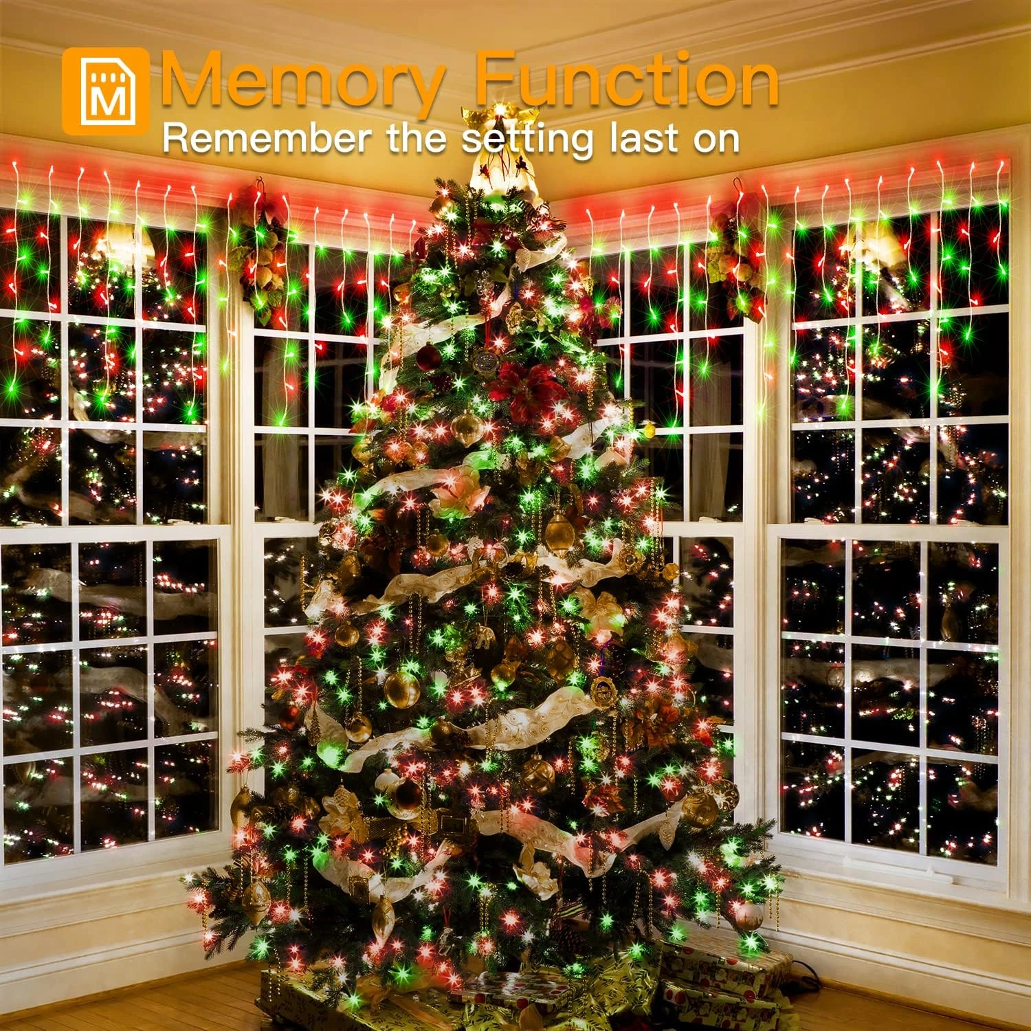 - 🎄【8 Modes with Remote】 Steady on/ In Wave/ Sequential/ Slo-Glo/ Chasing Flash/ Fade/ Twinkling Flash/ Combination. Adjust modes by remote easily, and choose favorite one to create a lively atmosphere. Connected Red and Green led Christmas icicle lights can be controlled by one remote.
