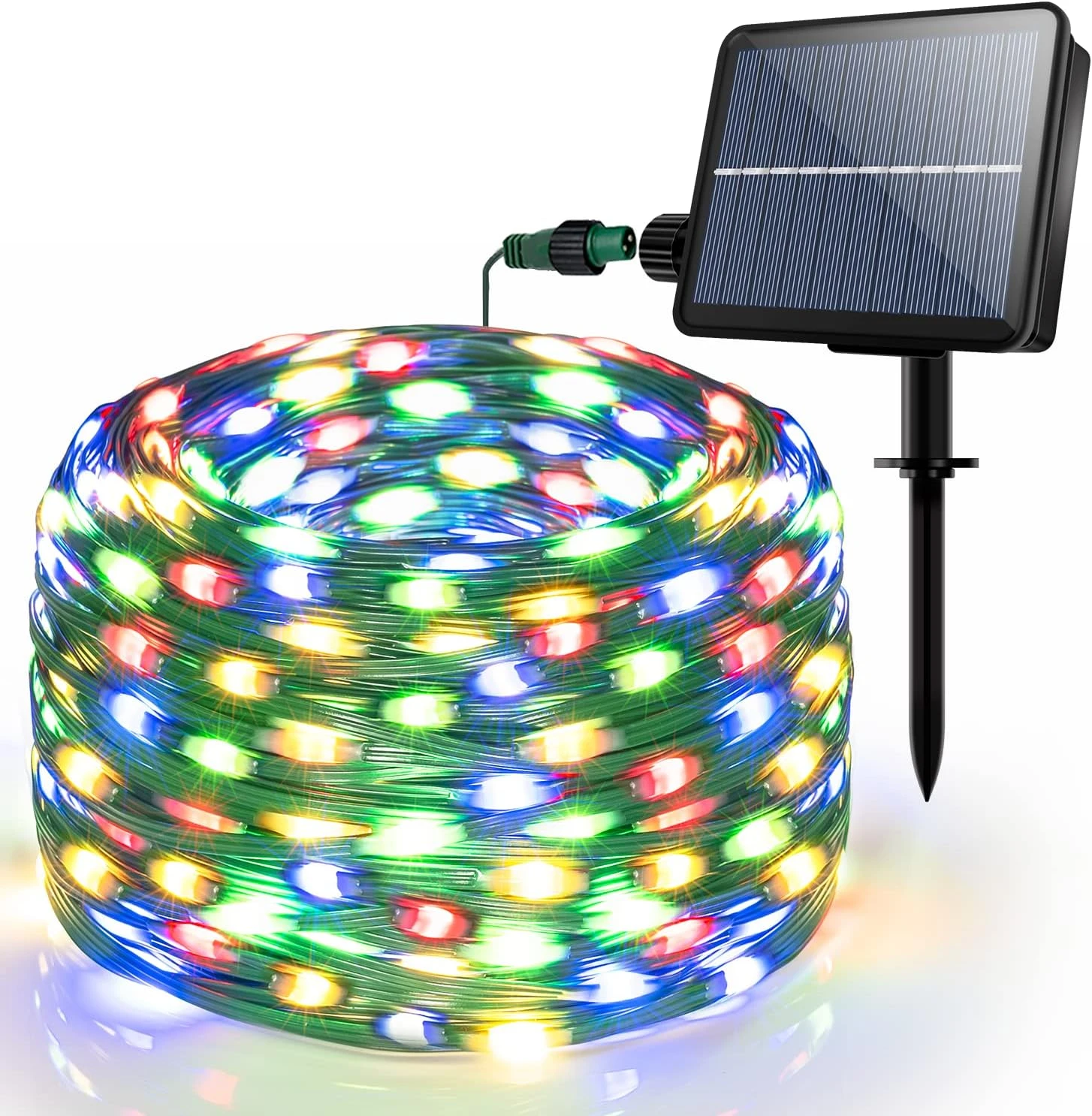 - 【100FT 300LED Longer Solar String Lights】Ollny new solar powered string lights has 100FT 300LED, super long, bright and IP 67 waterproof. The copper wire is wrapped by PVC, which will not be tangled or knotted. It was designed with 8 modes and the large-capacity solar panel support it lighting 18 hours. You Deserve this Longer, Brighter, Smoother Romantic multicolor Solar String Light.