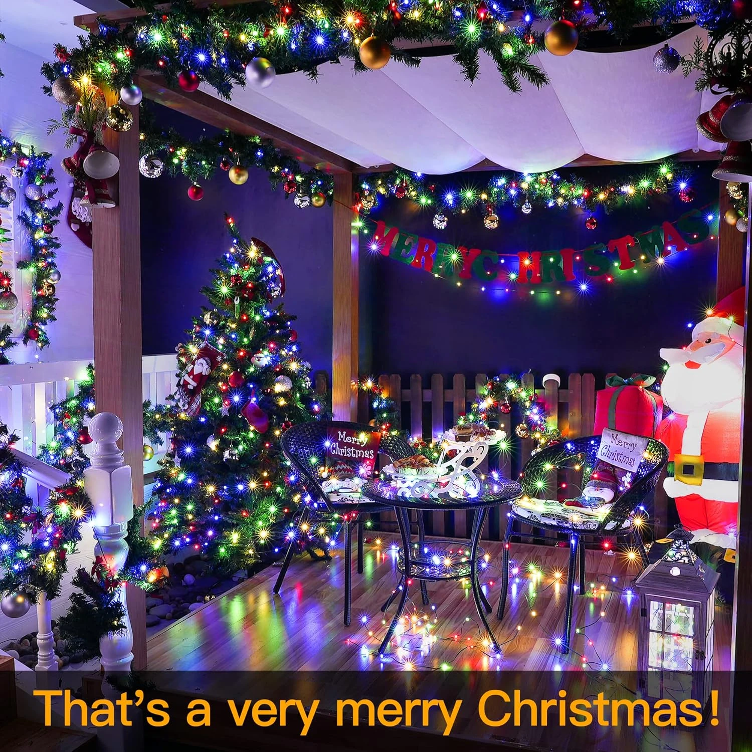Ollny Solar Christmas Lights, Solar String Lights IP67 Waterproof 100FT 300LED Super Long Outdoor Solar Fairy Lights 8 Light Modes And 3 Timers Solar Powered Christmas Rope Lights For Garden House