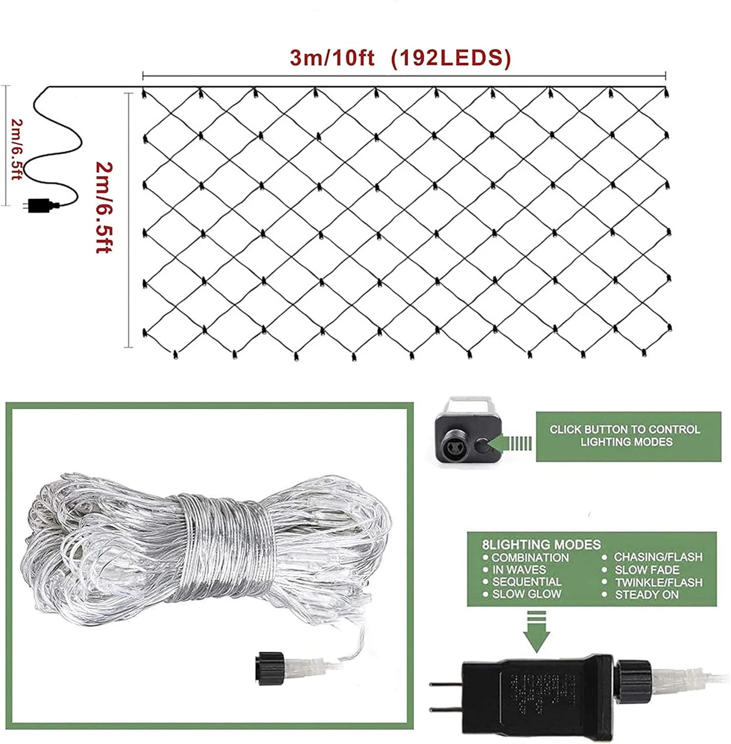 - ♥8 Modes : The mesh fairy string lights with 8 modes that will satisfy your different need, just press the button on the plug to change the mode.