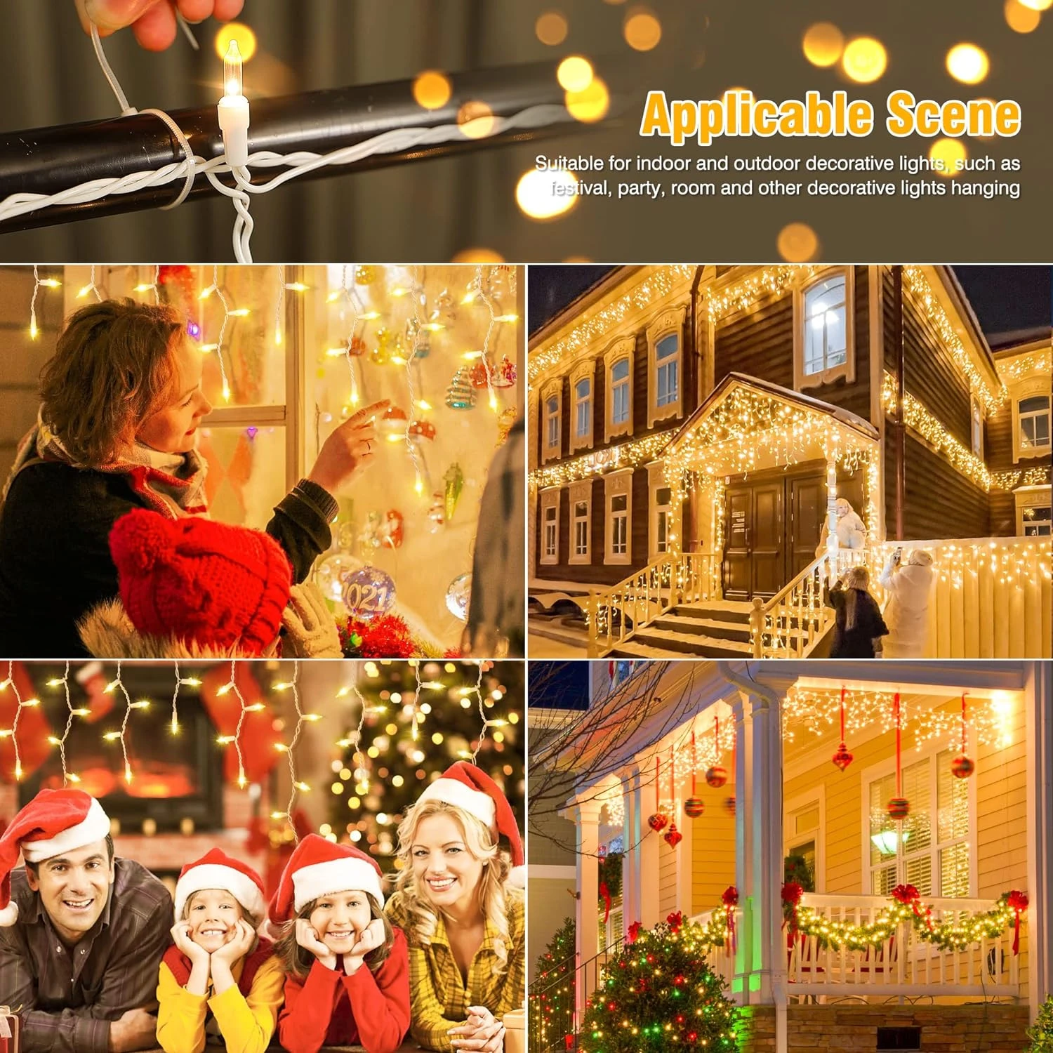- 【Better Choice for the Upcoming Christmas Decoration】🎁The Christmas Icicle Lights are better that is an improved Icicle Lights bulb style,which compare with old bulb, lighting along the eave, deck, stairs, fence, creates a charming atmosphere.The bulb has a special snap-on design.If one of bulbs breaks,you can replace it provided by us without affecting the other bulbs and keep using. Light up your life with Brighter Warm White Icicle Christmas Lights.