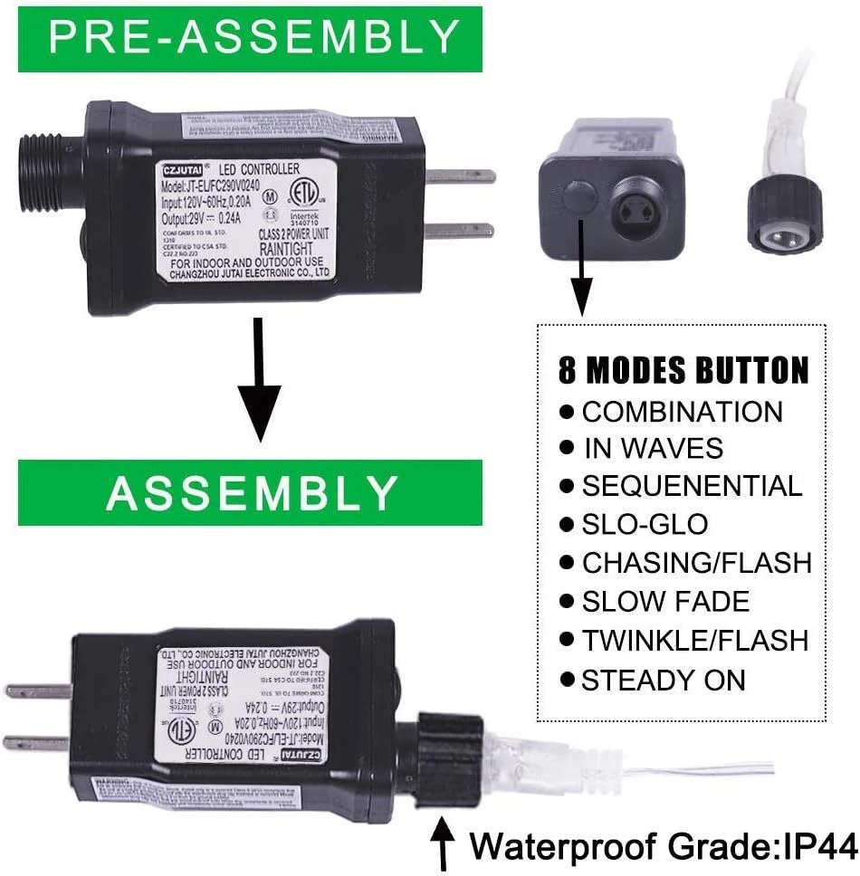 - 8 Modes with Memory Function: combination, in waves, sequential, slogs, chasing/flash, slow fade, twinkle/flash, and steady on. The controller is designed to remember the last setting after cutting off the power. No need to set again.