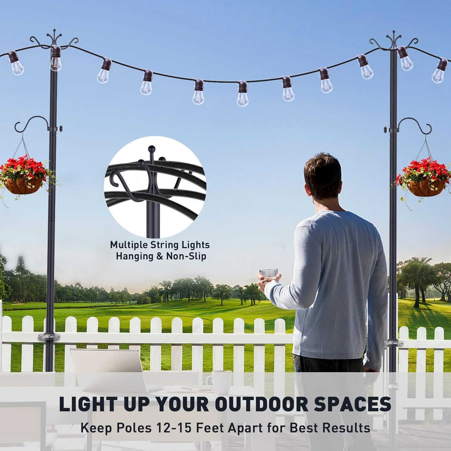 - 【Overall, our outdoor string light poles provide a stylish and long】: lasting solution for any outdoor lighting or decoration needs. With their sturdy and durable design, secure placement and stability, easy installation, versatility, and exceptional customer service, they are an excellent addition to any outdoor space. Whether you are hosting a backyard party or looking to add a romantic touch to your outdoor dinner, our light poles are the perfect choice for your outdoor decoration needs.