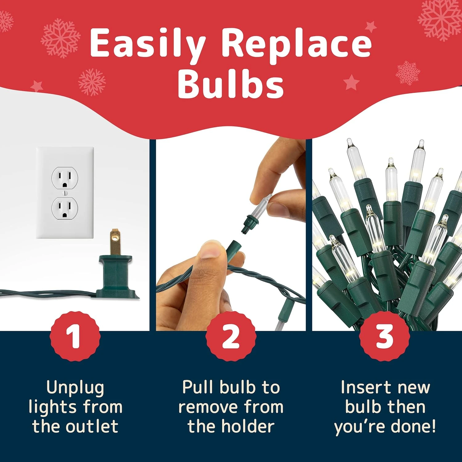 - TWINKLE LIGHTS: Includes 1 flasher bulb (red coated bulb) for every 50 counts of bulbs. Replace a bulb in the string with the flasher bulb and wait a few seconds to make your Christmas lights twinkle. Great for indoor and outdoor Christmas tree decorations to give them a fairy lights type look.