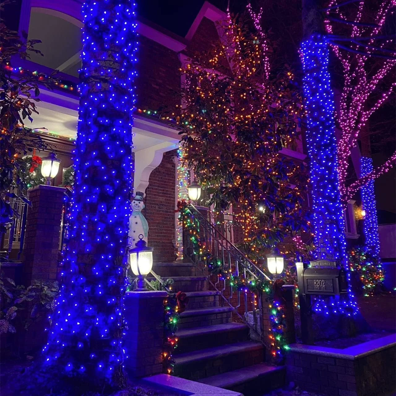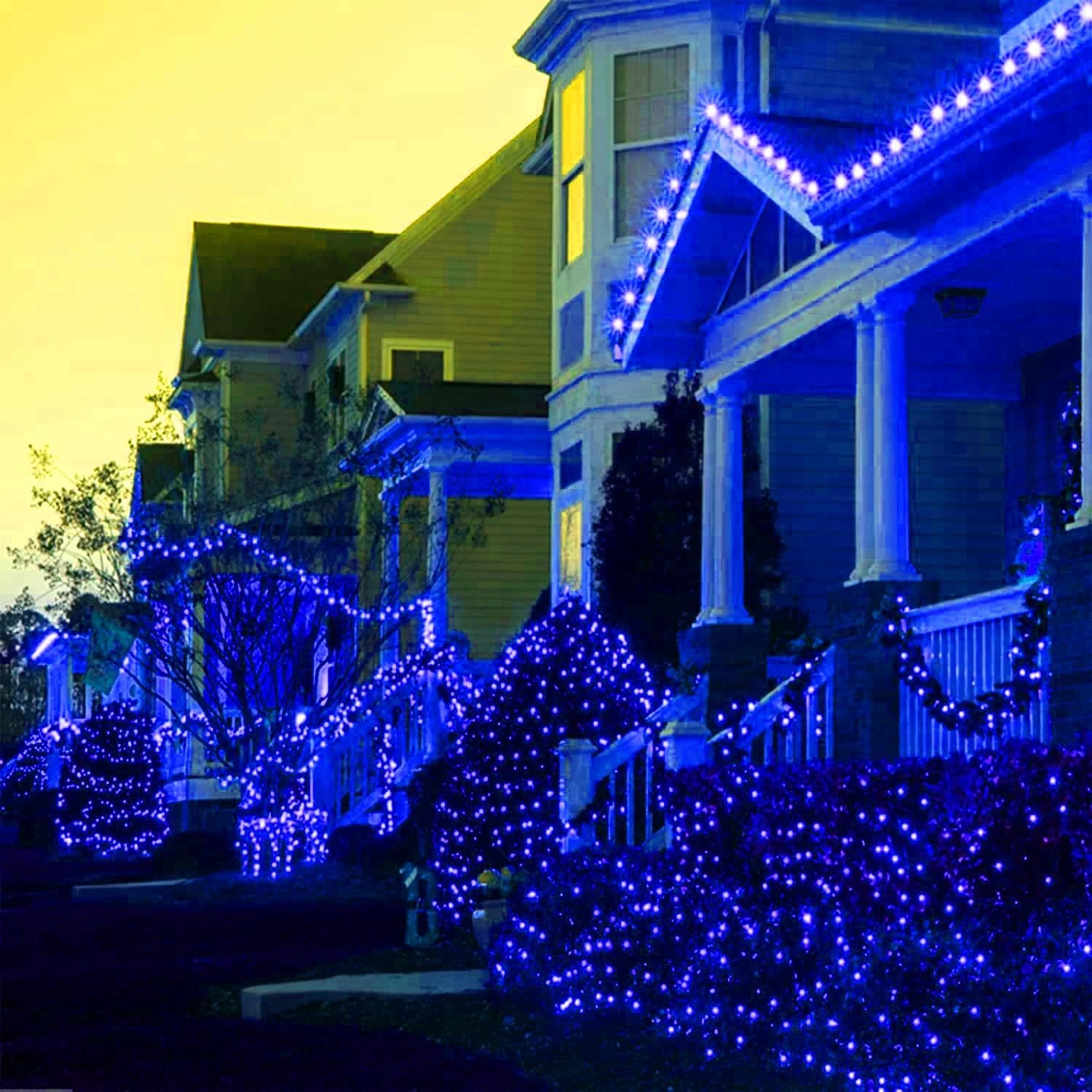 - Easy to Install and Widely Use: 100 LED Blue *2 Pack, Total Length: 13 m/43 ft, light length: 10m/33feet, Lead wire Length: 3m/10ft, Space between LEDs: 10 cm/3.94 inch. Solar panel with ground stake, the 43-foot-long light string is perfect for wrapping in a tree or anywhere you want to decorate. It creates a warm, joyful and festive atmosphere for decorative passageways, gardens, terraces, yards, lawns, fences, porches, roofs, Christmas, weddings, holidays, parties, etc.