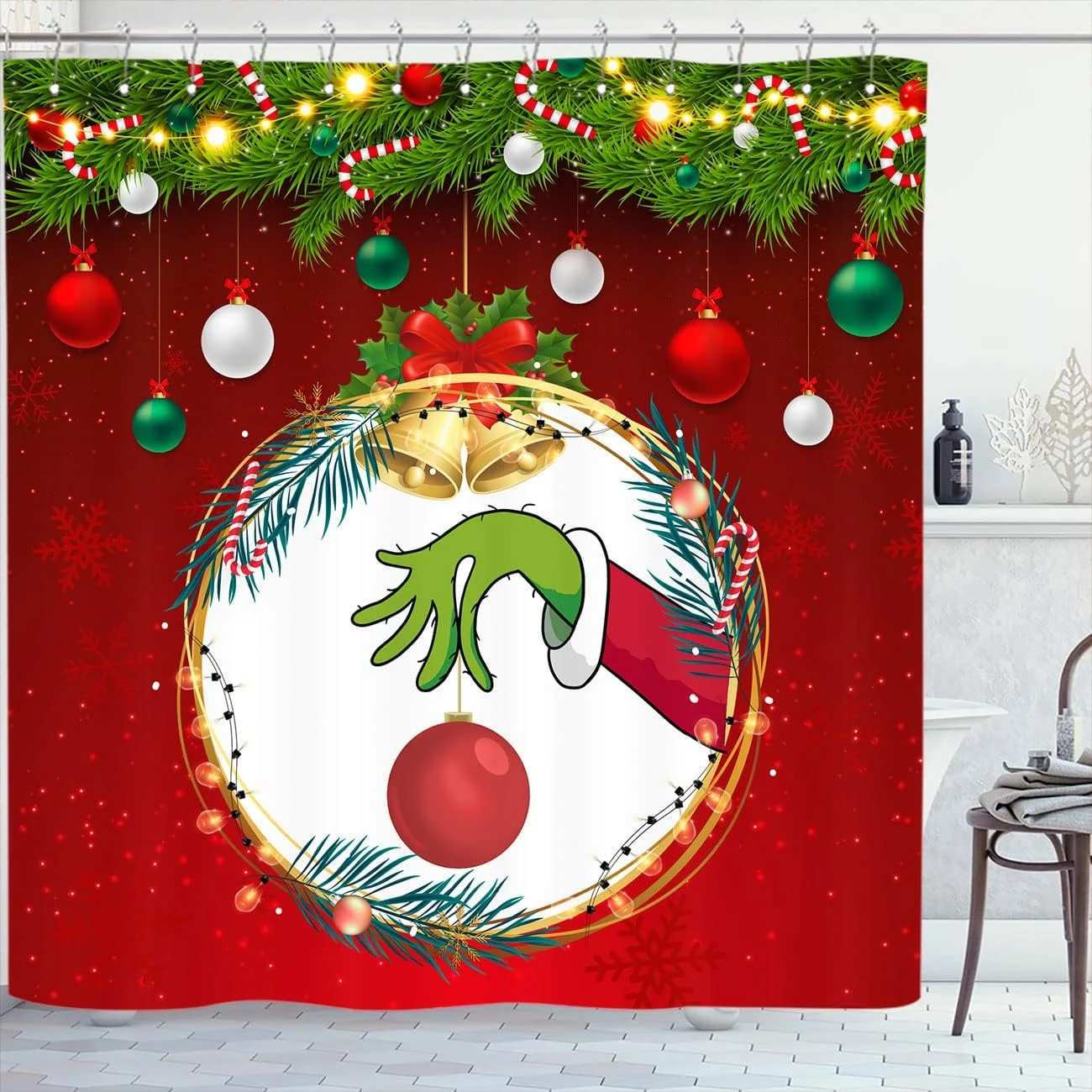 - 【CHRISTMAS DECORATION】This Christmas shower curtain sets with rugs is printed with high-resolution. The Partern are clear and vivid.It can create an holiday atmosphere to your bathroom at at the moment your hang it up,It also can be a lovely decor for home, apartment, condo, hotel, camper, RV, or other place when you need a Christmas shower curtain to decorate your home.