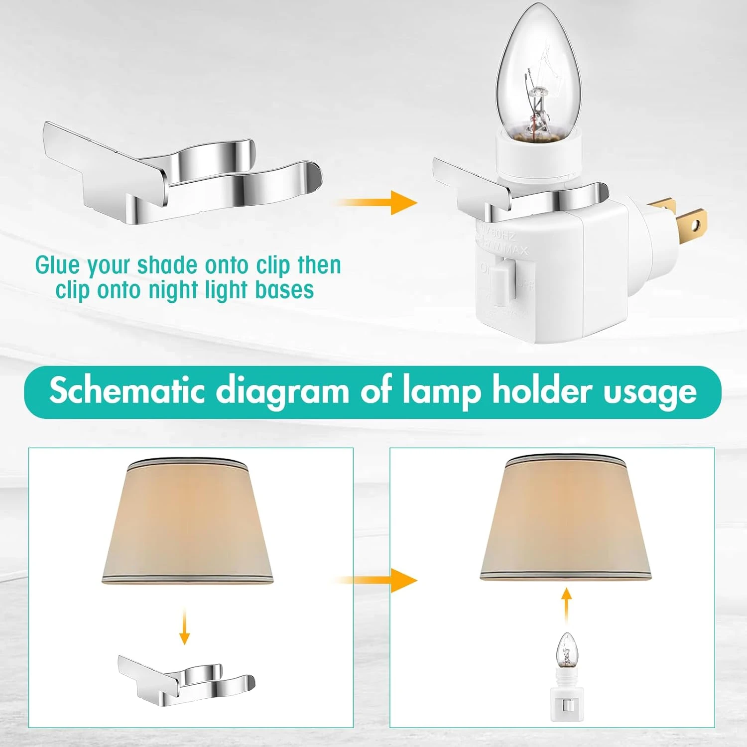 - Convenient and Easy to Install: the plug in night light offers a nice combination of 8 plug in modules 8 bulbs and 8 metal clips, making it easy to install and providing you with multiple lighting solutions in one package; With a nice combination of plug and play design, our plug in night light module is easy to install; Simply twist the bulb into the socket, controlling the force and twisting it slowly until it securely touches the bottom of the socket