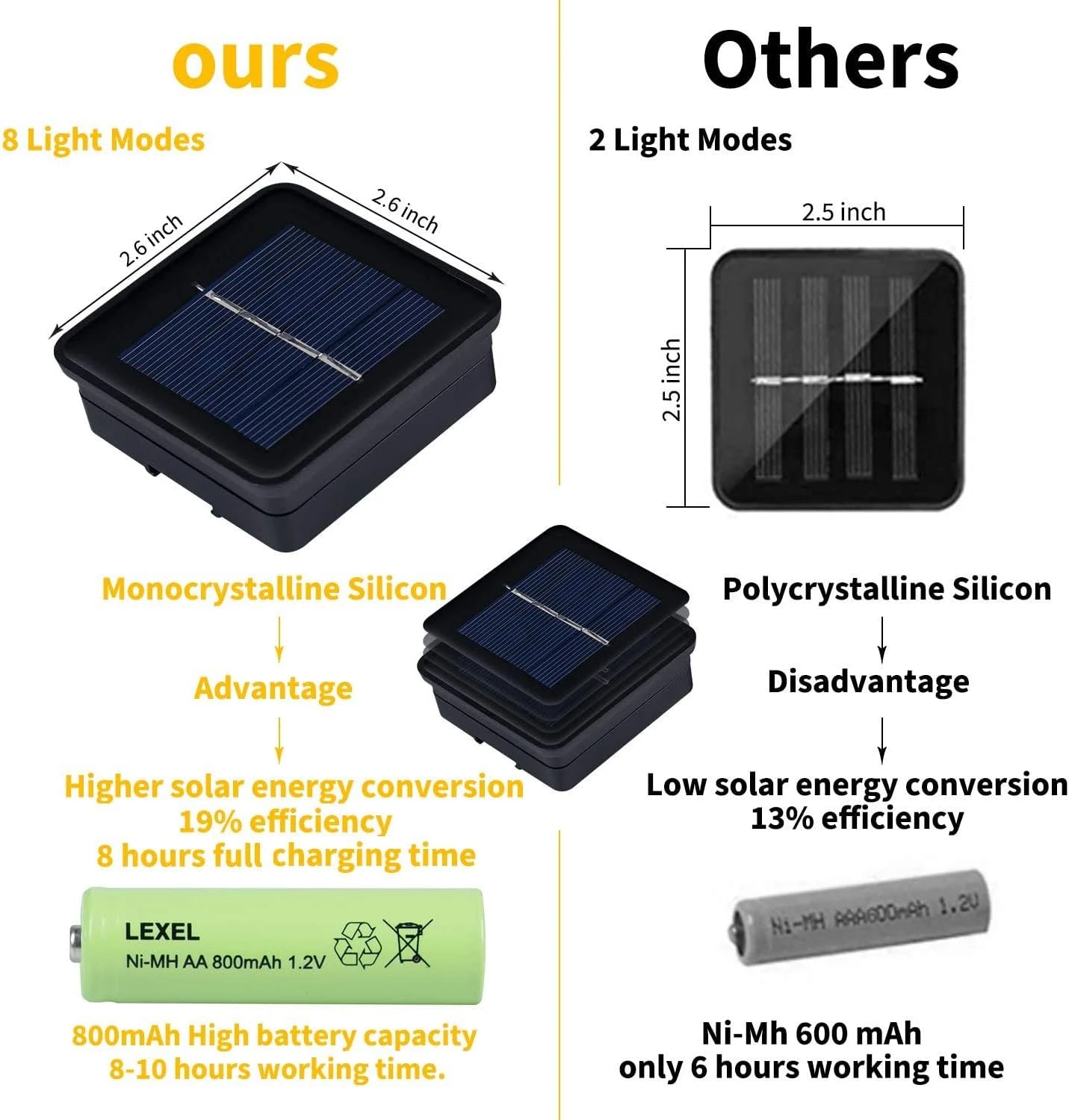 - Long Lifespan and Lifetime Support Guarantee – this solar string light may work for 8-14 hours a time, varied from intensity of sunlight, the volume of solar energy stored everyday and the mode selected; this solar string light may be used for at least 30,000 hours.