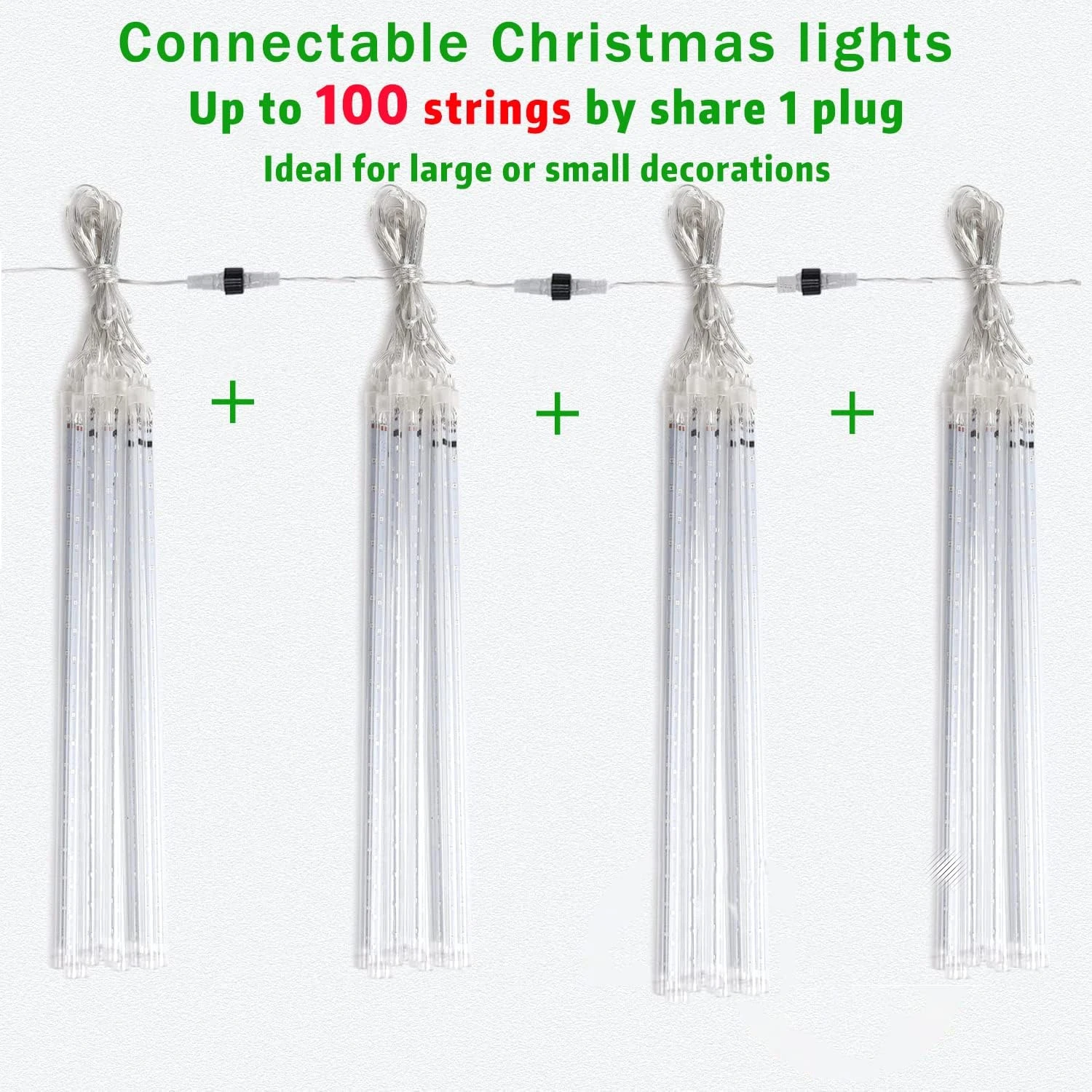 - ✅【Up to 100 strings Connectable】 By sharing 1 plug, it can be connected in series, which is perfect for large Christmas outdoor decoration (The brightness will not be reduced). Each bulb of the LED string turns on and off sequentially and quickly, just like a meteor shower or falling snow in the night sky, very beautiful.