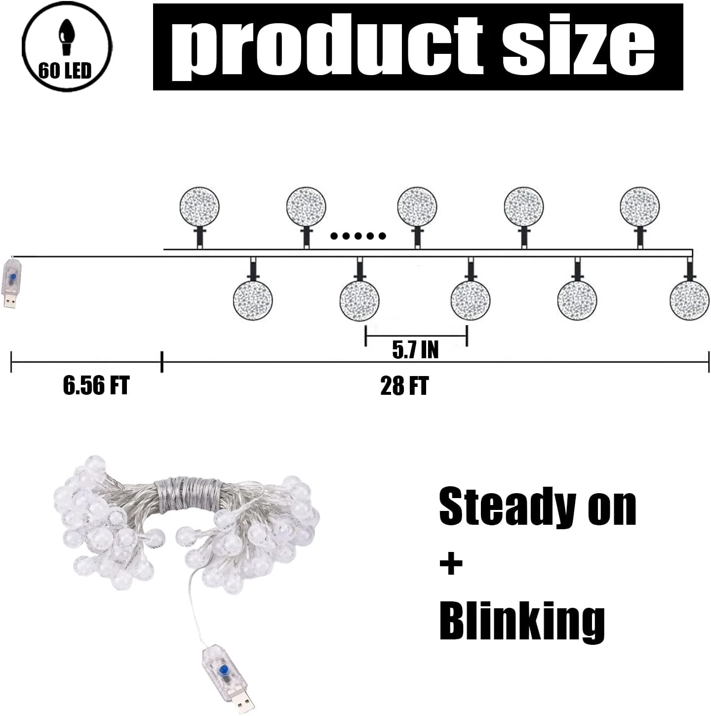 - [ Unique Design ] These decorative USB fairy lights are consists of 28ft durable silver wire, and 60 bubble balls. And exquisite new upgraded crystal bubble ball has a crystal clear color and contains many small bubbles can refract the beautiful light.