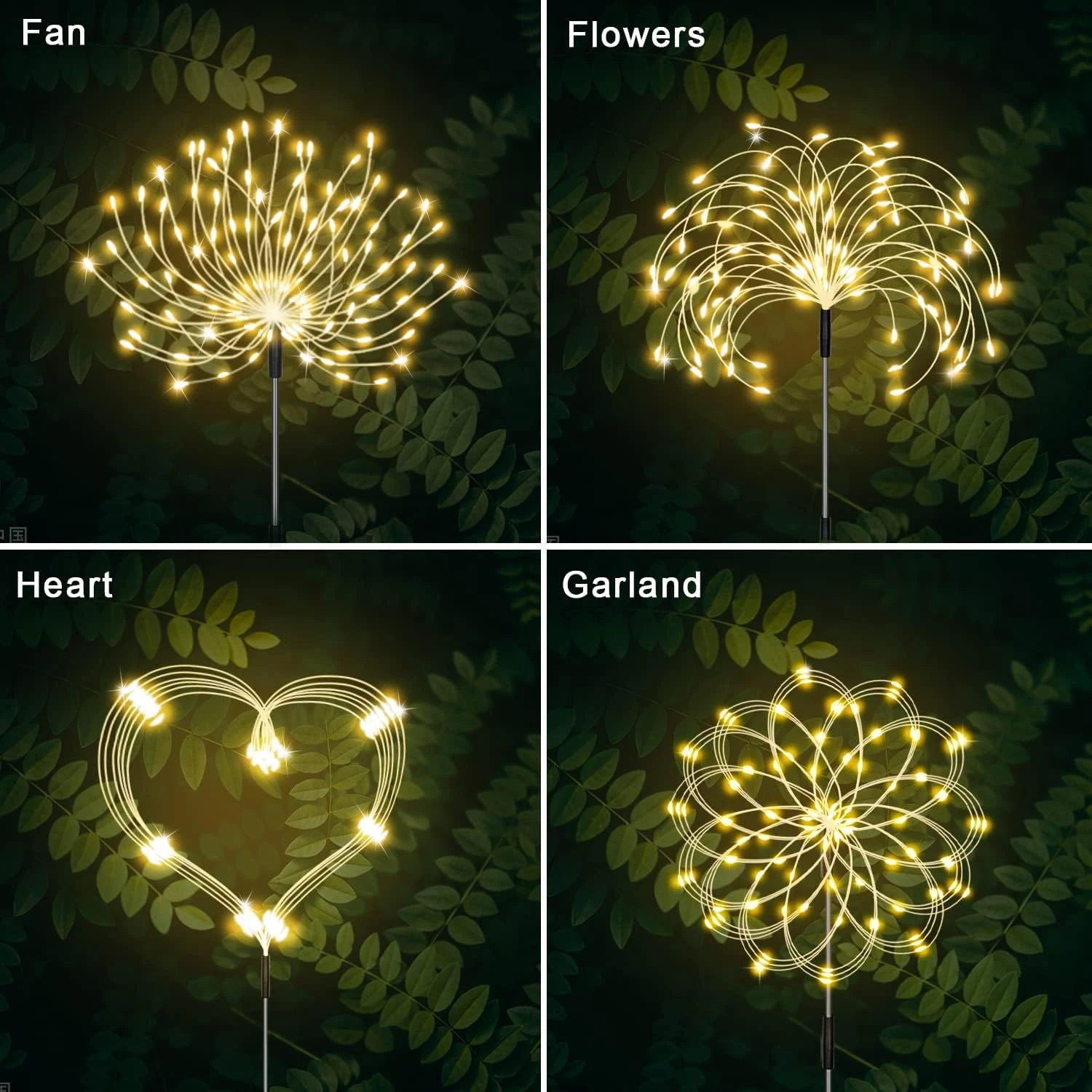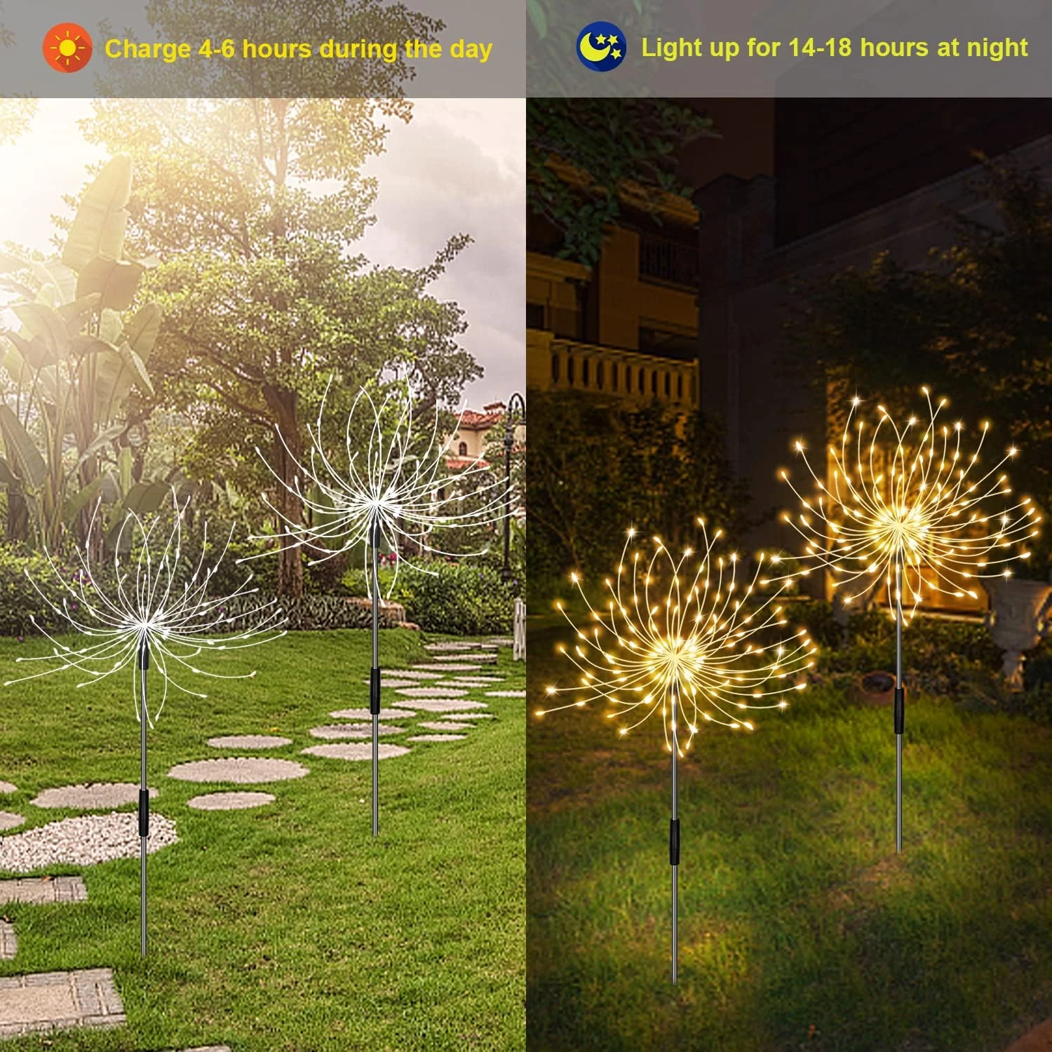 - ✬ 8 Lighting Model– Decorative firework light can be adjusted in 3 brightness and 8 modes, you can use the remote control to choose your favorite light mode. There is an automatic light sensing function in the garden light, which automatically charges in the sun during the day and automatically lights up and flashes at night.
