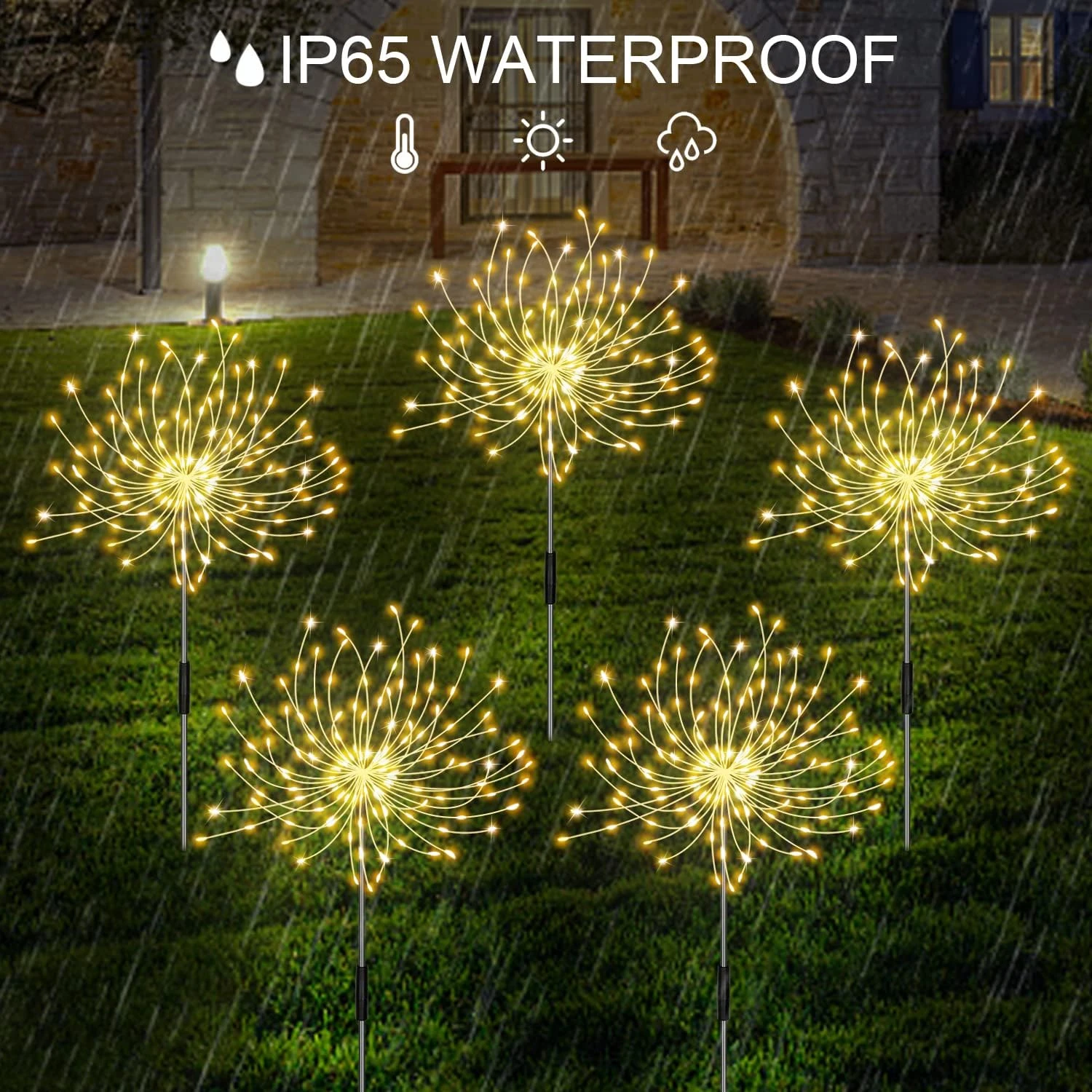 - ✬ 5 Wire Connected Lights-not individual–Firework light adopts a unique design, which connects 5 garden lights in series and shares a large-capacity solar cell to ensure the stability of the garden light’s power supply.