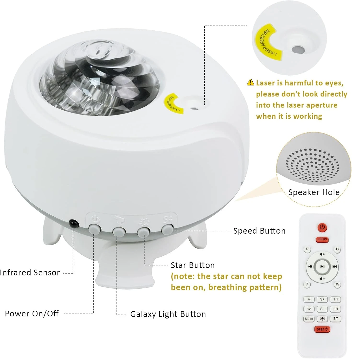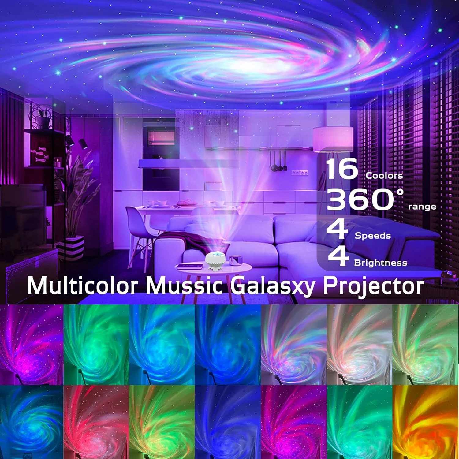- 【2023 Upgraded Projection Night Light】: All-in-One: Galaxy Projector + Starlight Projection + Bluetooth Speaker + Night Light. 360° dynamic projection and dynamic color-changing modes. The latest upgraded star projector brings extremely stunning starry effects.