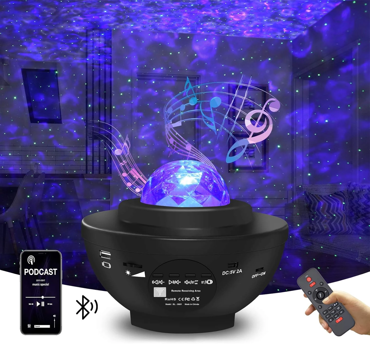 - Easy to Operate & Timing Off: The remote remote control allows you to easily select the ocean wave or starry sky projection mode, change the color/speed/brightness of the wave light, adjust the music mode/volume/sound activation mode, set 1h/2h timer or 4h automatic shutdown Timer.