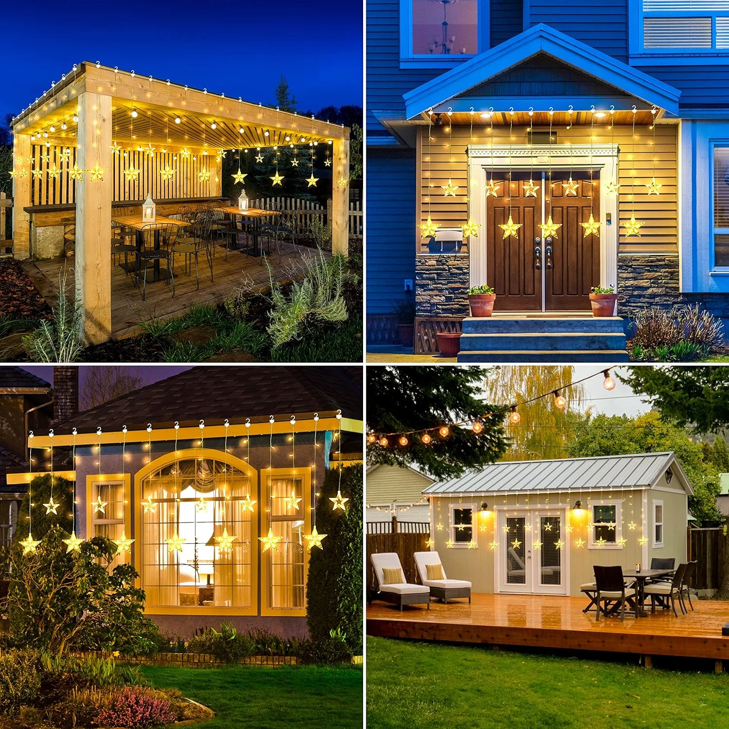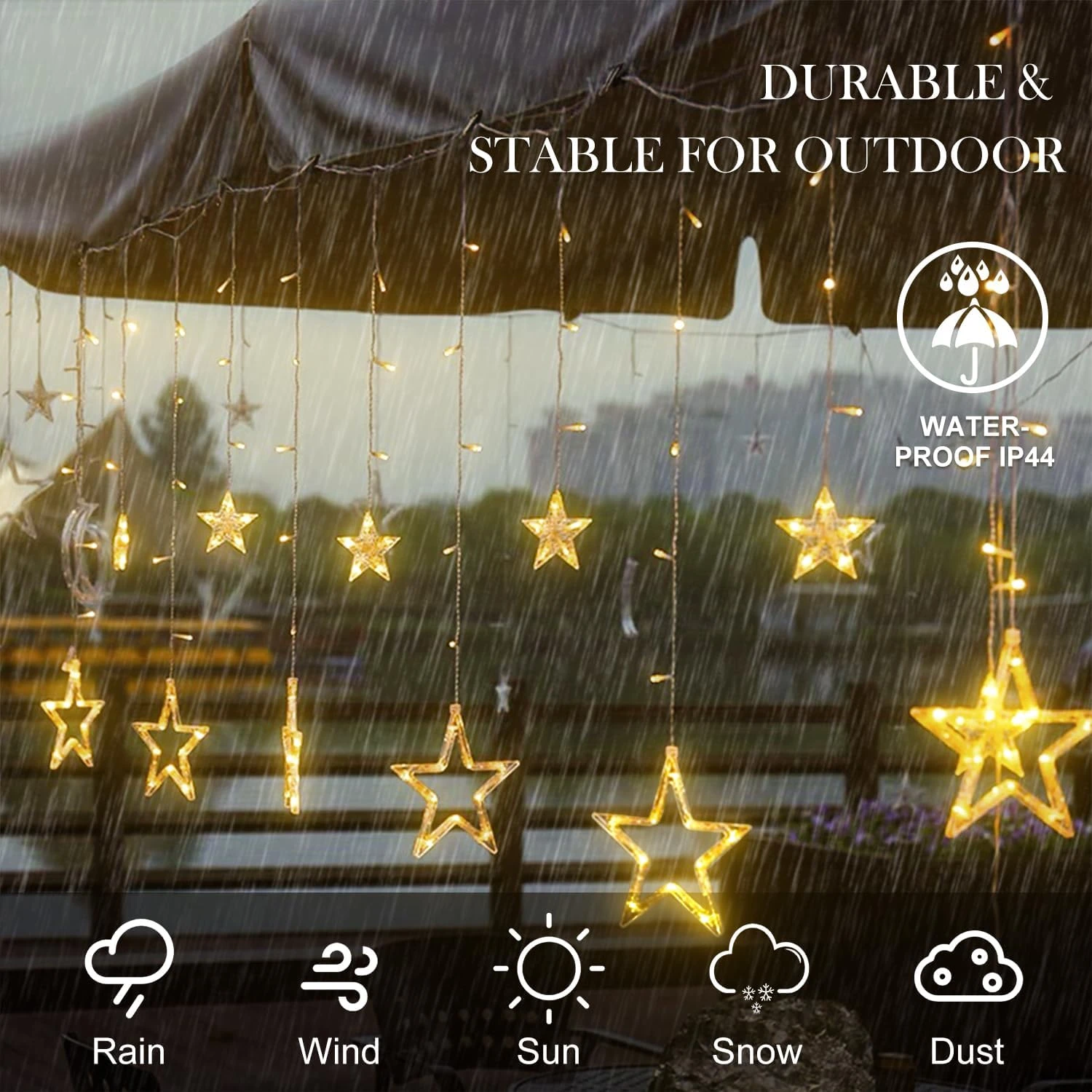 - Bright & Warm Ambience: The energy-efficient twinkle lights emit a charming warm white light with 108 LED bulbs, adding a soft and warm festive atmosphere to your home. The solar panel of the curtain lights has a light sensor control function, which can make the patio decor automatically light up at night and automatically turn off during the day. Makes for wonderful ambiance lighting in your outdoors, garden, shelves, terraces, etc.