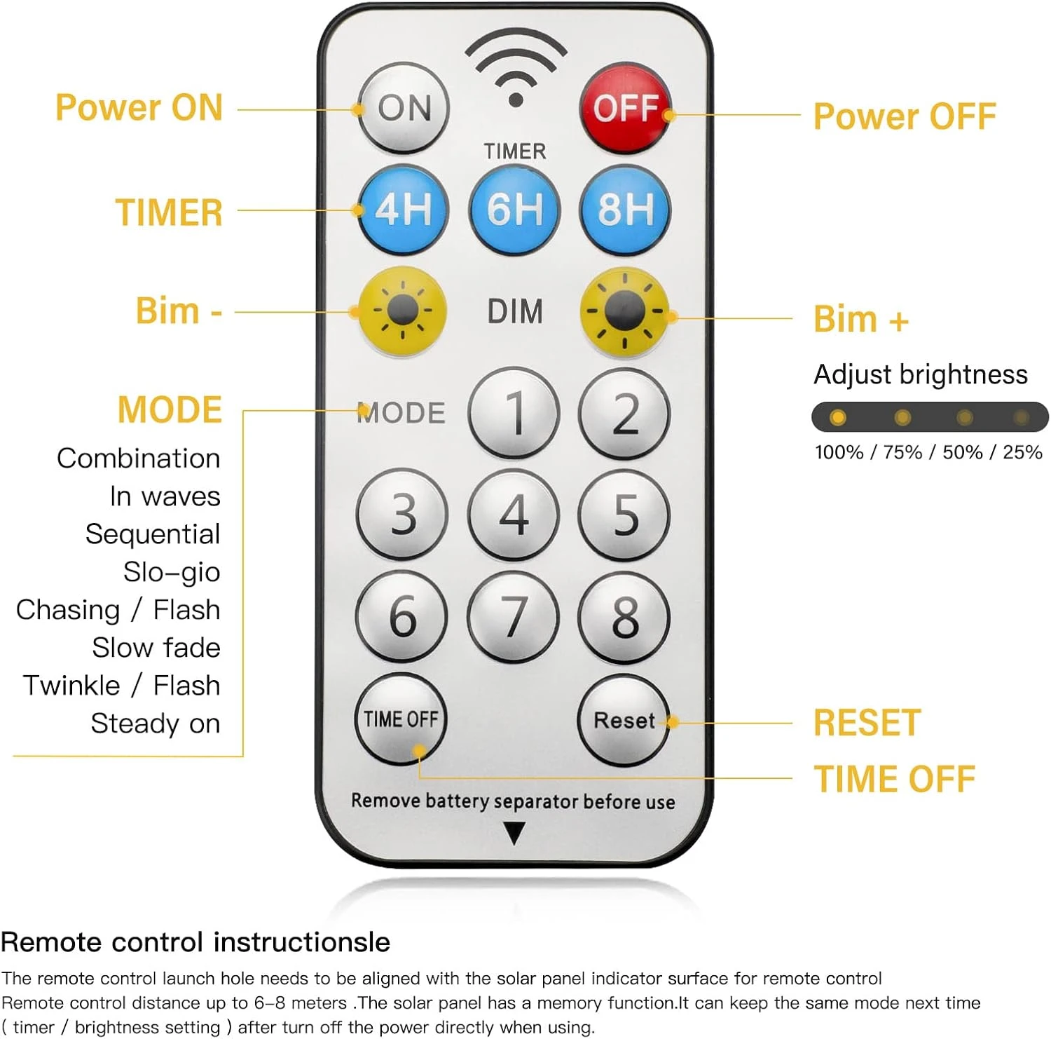 - Remote Control & 8 Fun Modes: These hanging lights come with 8 adjustable modes with memory function and remote control that allows you to choose the mode that best fits the occasion or mood you want to create. Combination, In Waves, Sequential, Slo Glo, Chasing Flash, Slow Fade, Twinkle Flash, and Steady On. Wherever you are, outdoor lighting products can create different atmospheres and moods for you.