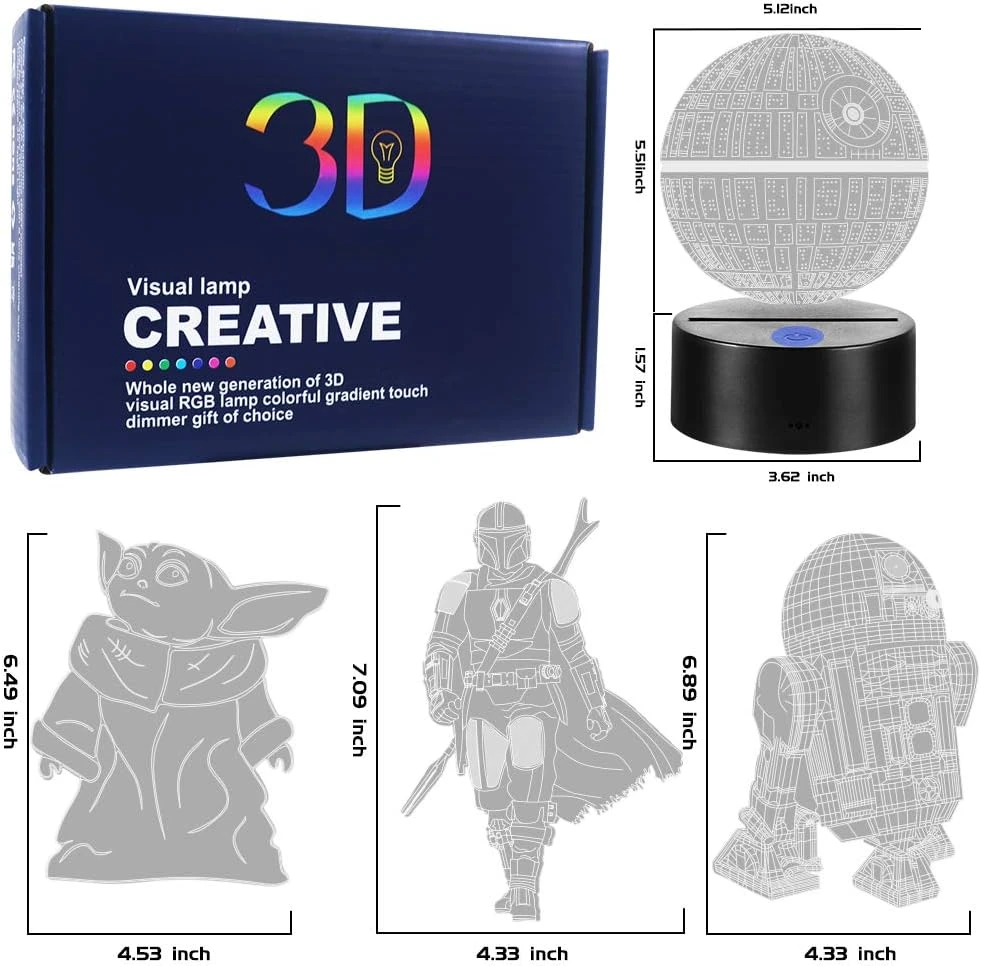 - 【3D Illusion Decor Lamp】The high transmission light guide plate makes the light projection present a Realistic Star Wars 3D effect, perfect for bedroom, kids room, living room, study room, office decor.