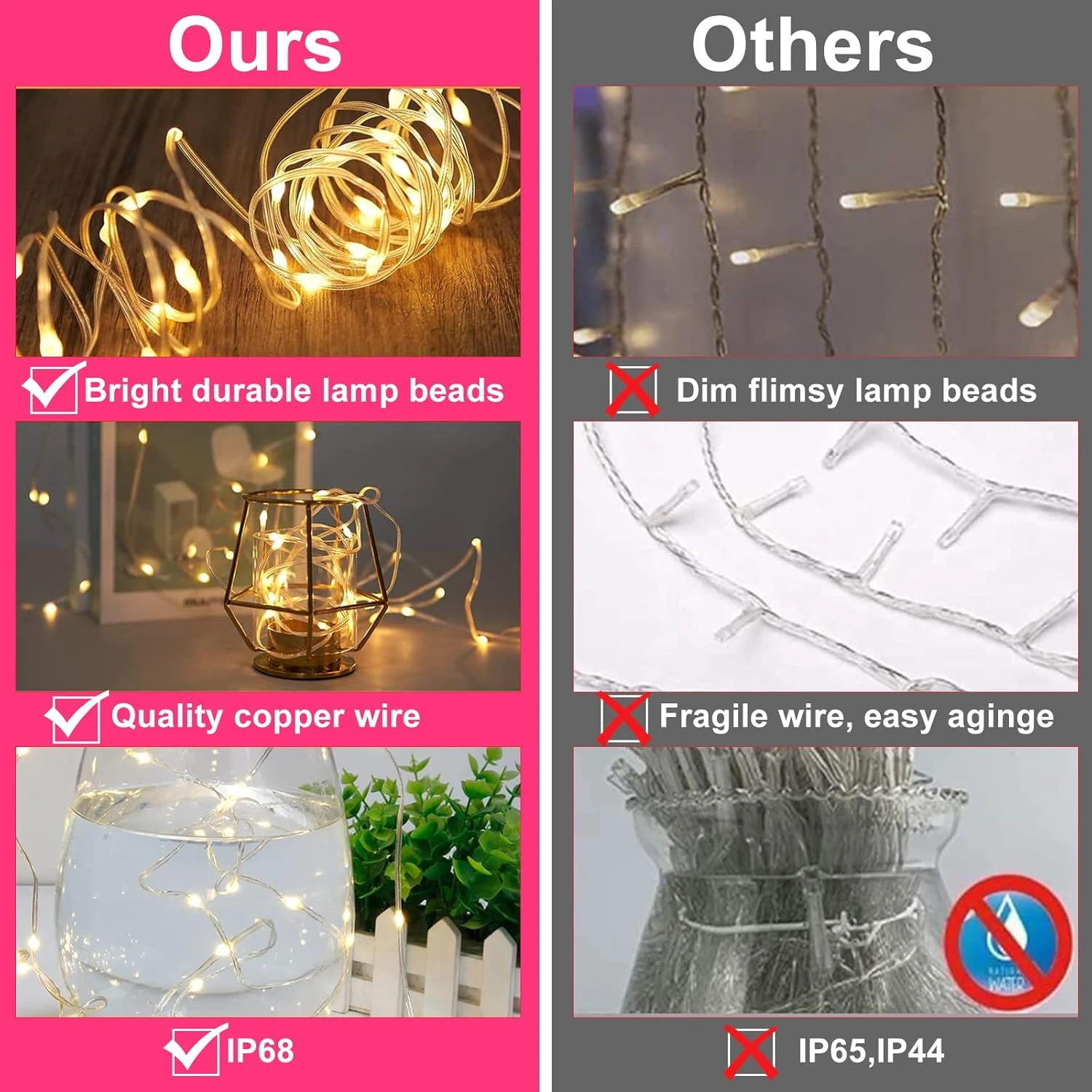 - 8 light models: with the wireless IR remote control, you can easily adjust the speed and brightness of the string lights. 8 different light modes for your choice: combination, wave, sequential, glow, flashing, transition, sparkle, continuous lighting.