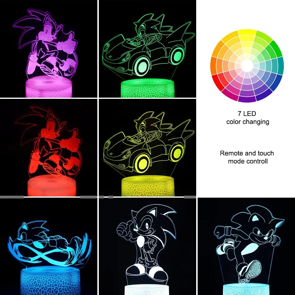- 【3D visual effect】 Sonic The 3D illusion night light has a nice hologram effect, and much better when in the dark. Great colors and awesome looking, it can be put in bedroom, child room, living room or birthday celebration as decorative light