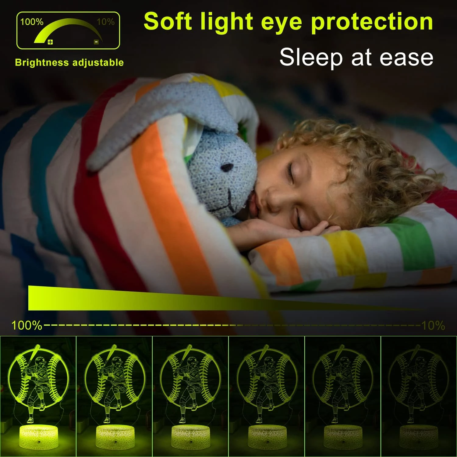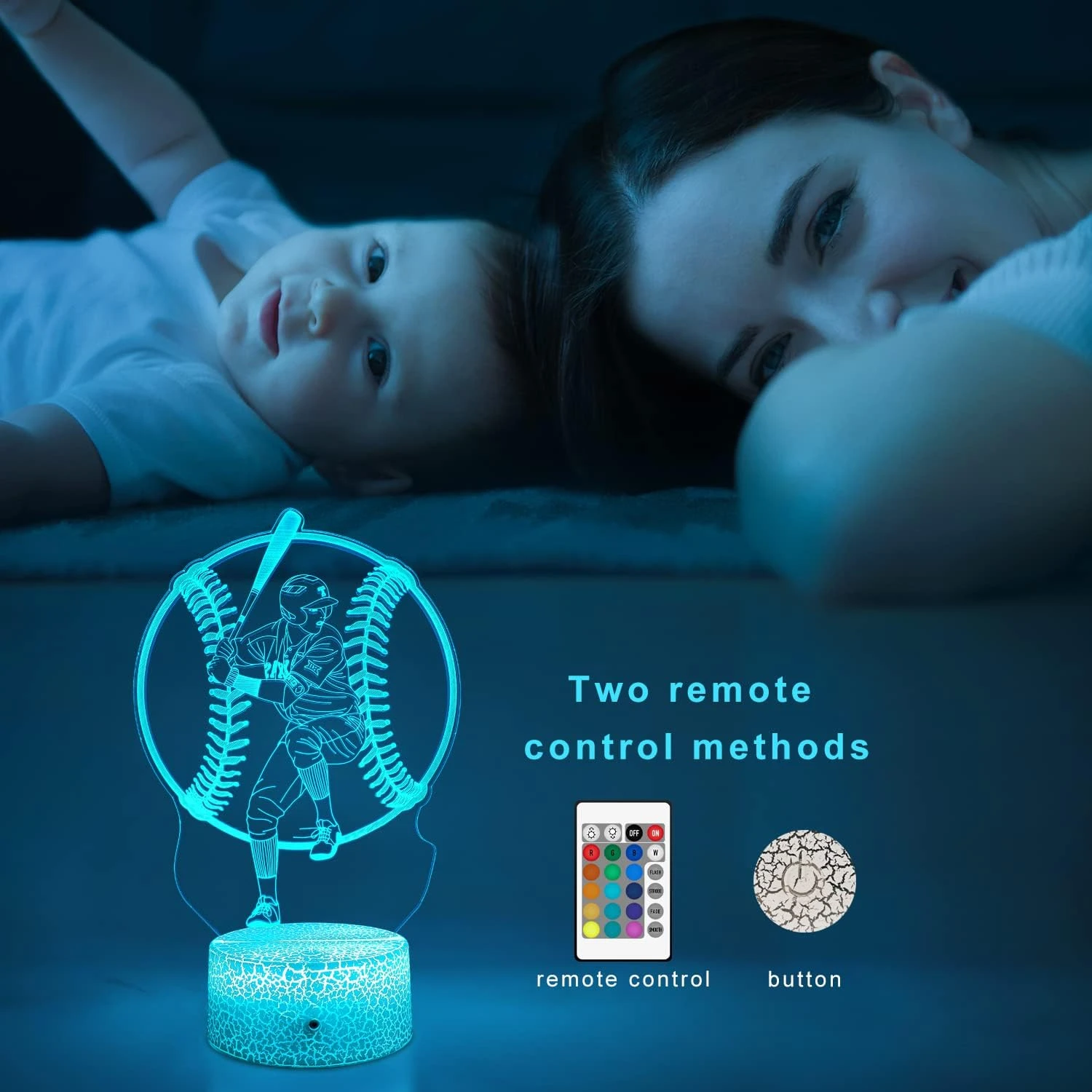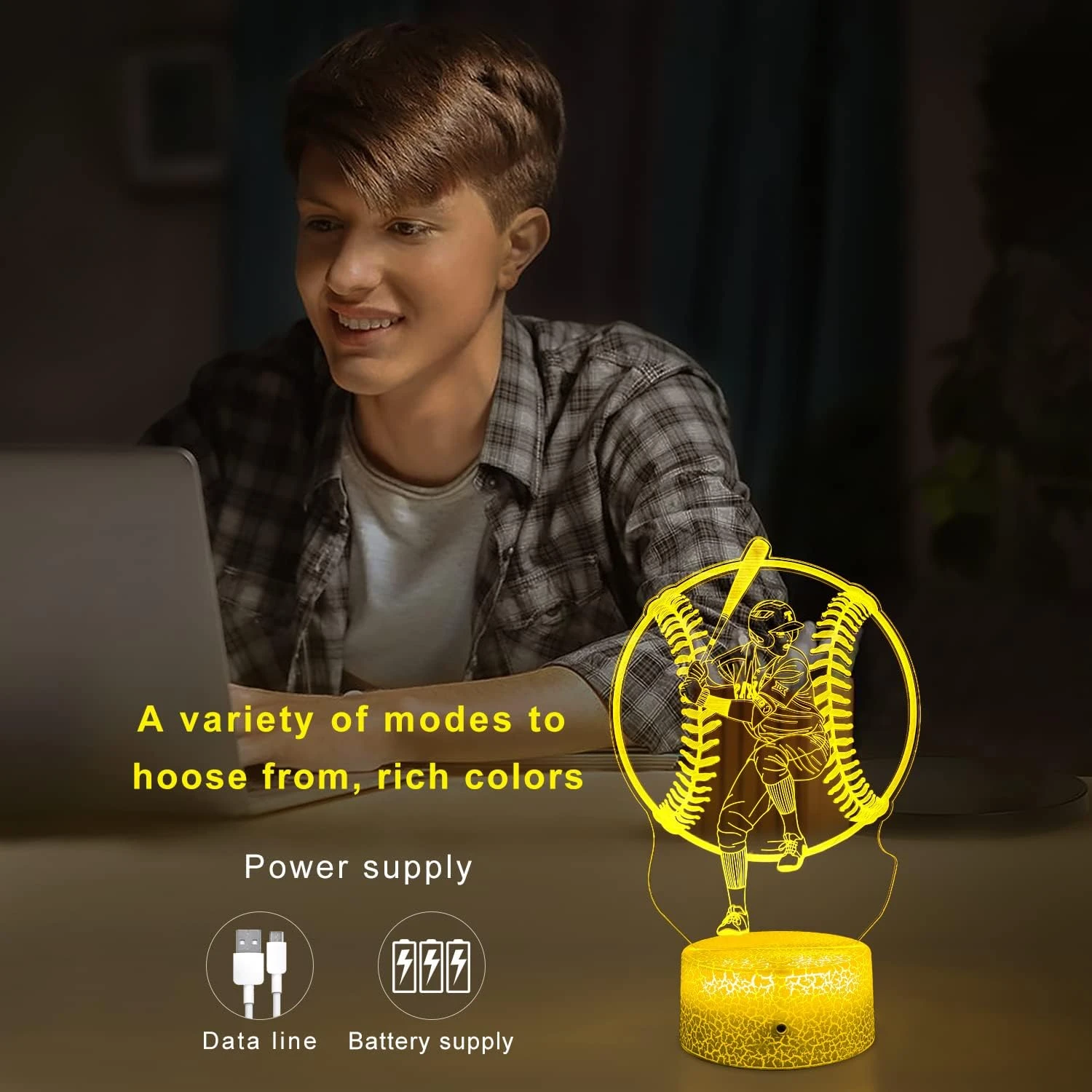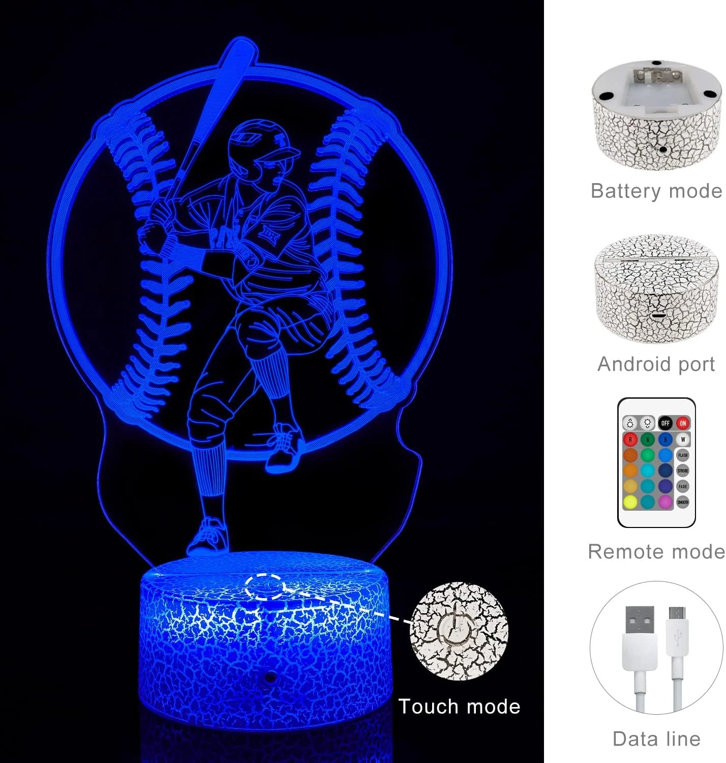 - 【Creative 3D Visual Effect】: The Baseball Player light for boys, working principle is light passes through the laser engraving acrylic flat panel to create an amazed realistic 3D visual effect,Bring you a peace and beautiful night with good mood and atmosphere.